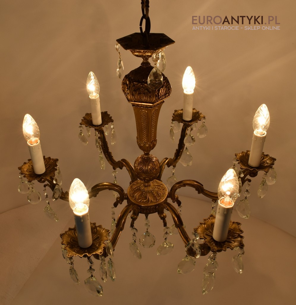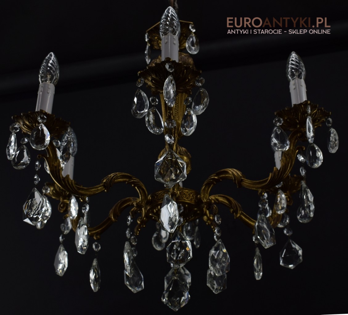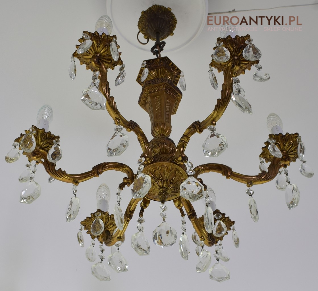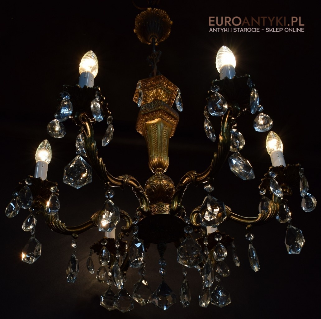 Antyczny żyrandol salonowy z kryształami. Lampy antyki.