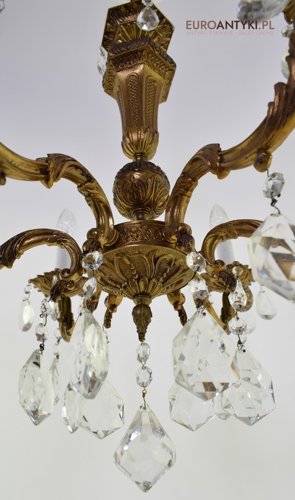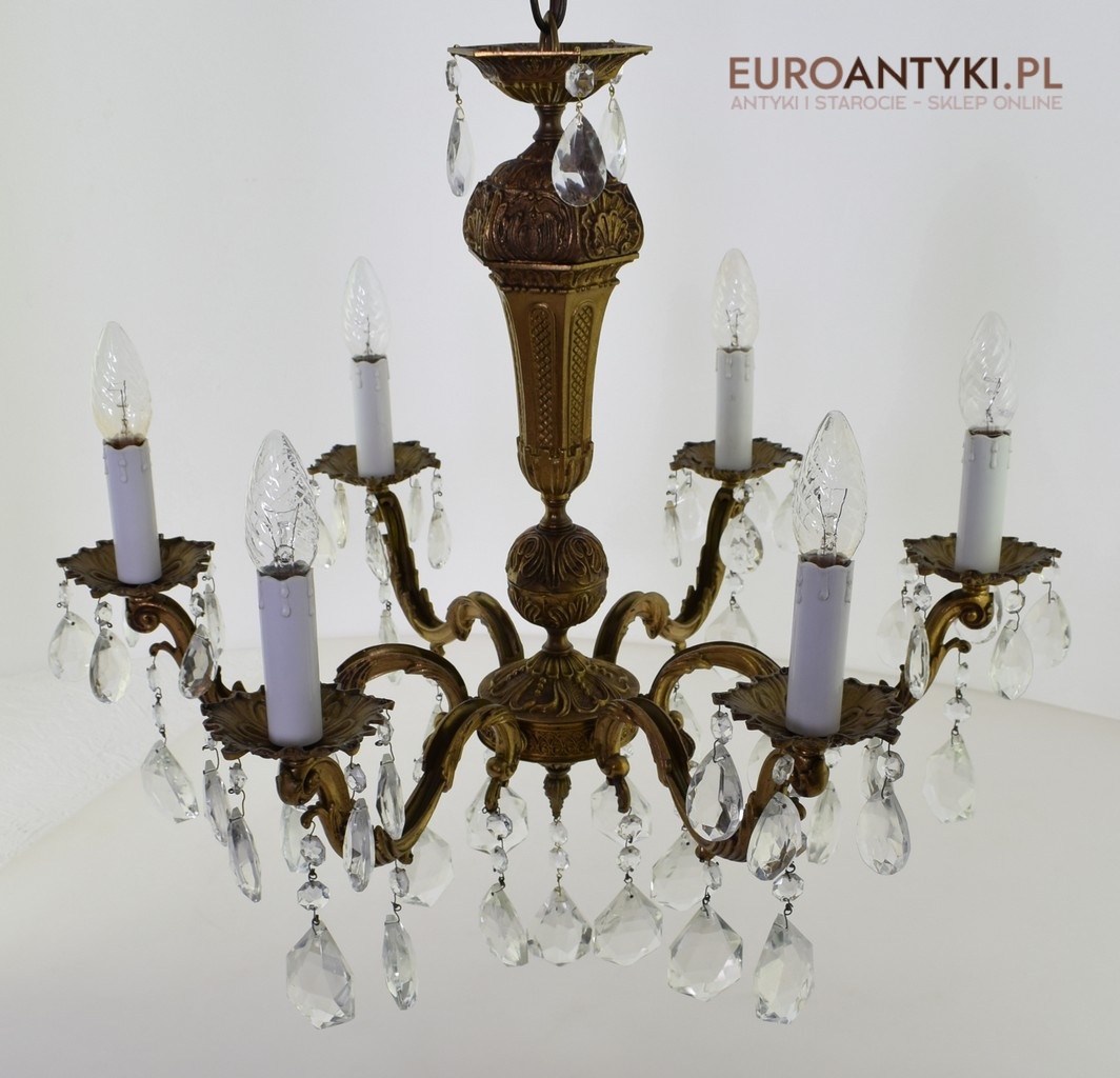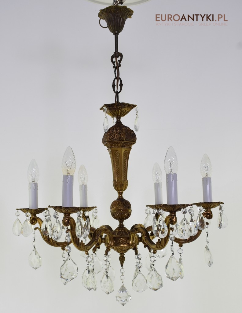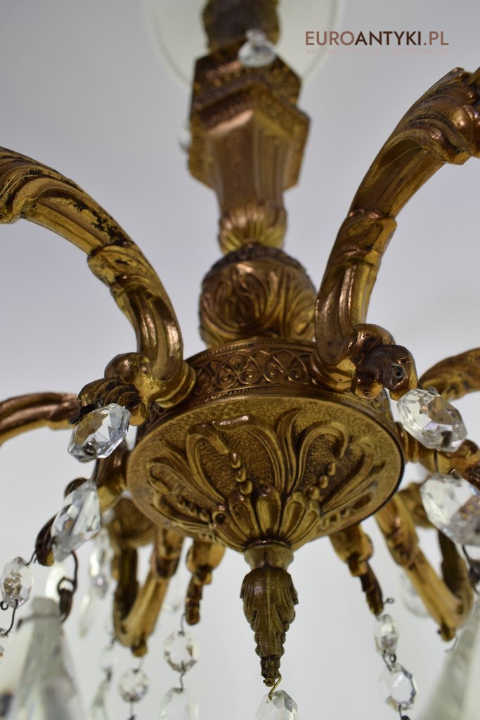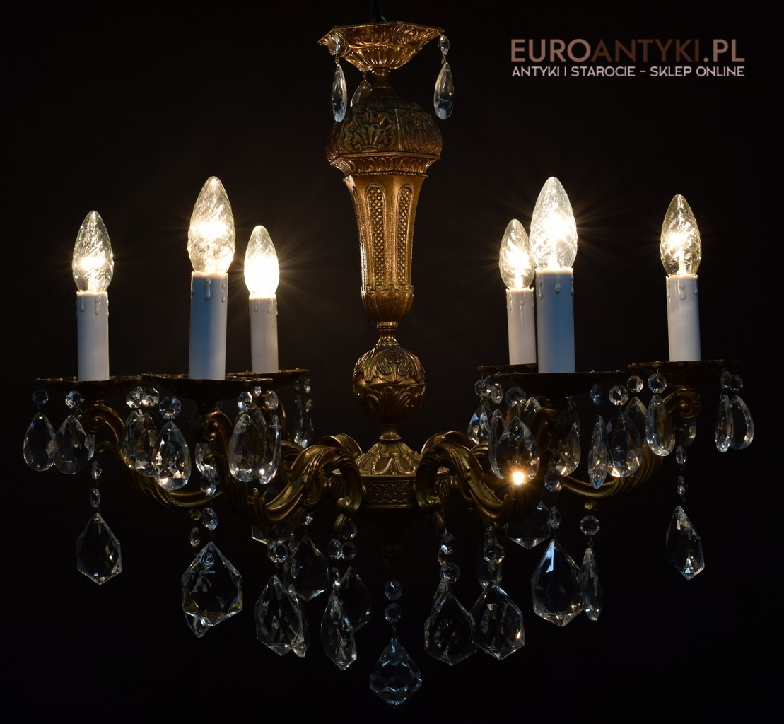 Antyczny żyrandol salonowy z kryształami. Lampy antyki.