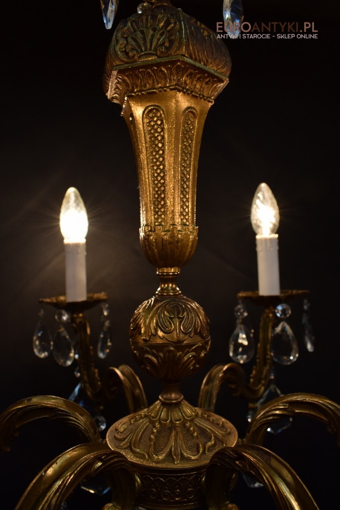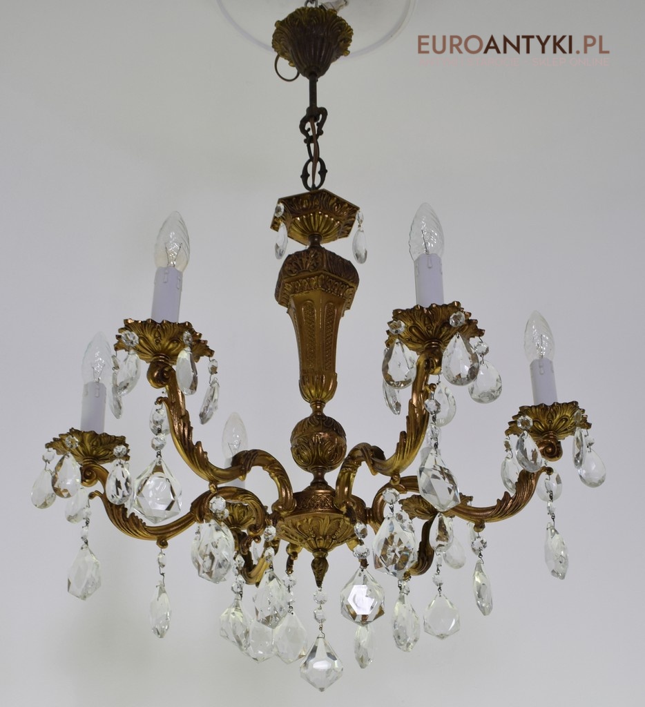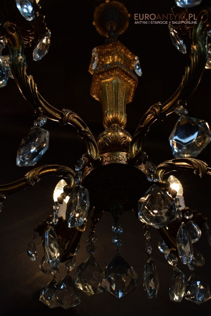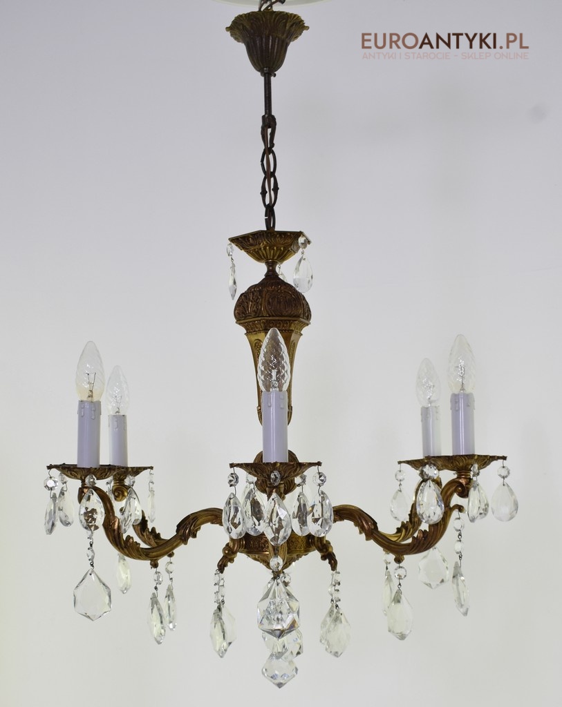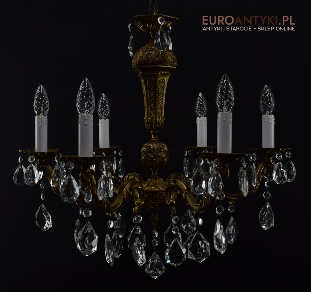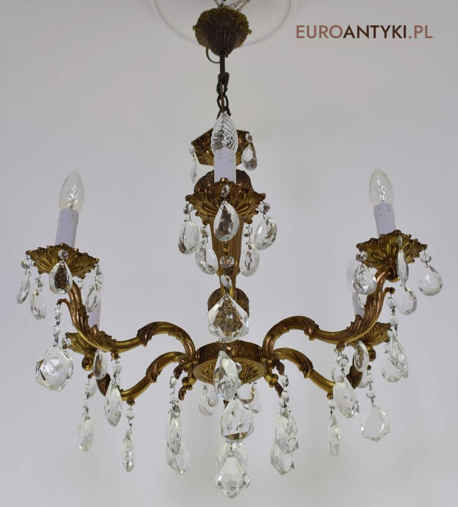 Antyczny żyrandol salonowy z kryształami. Lampy antyki.