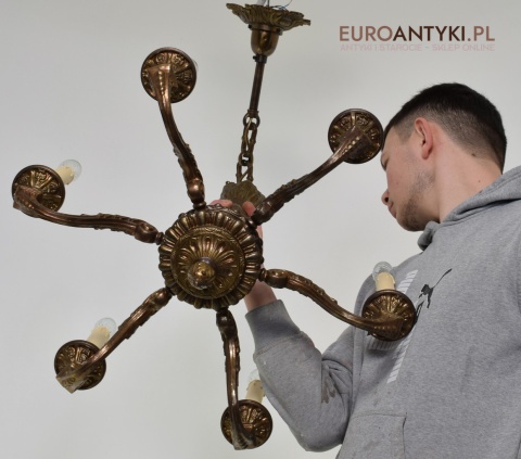 Monumentalny zabytkowy żyrandol z czasów międzywojennych.