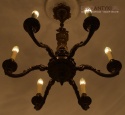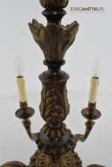 Całość bez uszkodzeń. Przedmiot kompletny, profesjonalnie wyczyszczony. Elektryka sprawna - sprawdzana przez naszego elektryka. Standardowe gniazda elektryczne typu E14. Obecnie można kupić żarówki LED o różnym natężeniu, różnej barwie światła i różnym wyglądzie. Nawet mała żarówka może być potężnej mocy i nie będzie pobierać wielu watt, przez co nie przegrzewa i nie uszkodzi kabli elektrycznych. Wszystkie lampy wysyłamy bez żarówek. Żarówki tego typu są łatwo dostępne w sklepach elektrycznych lub w internecie.