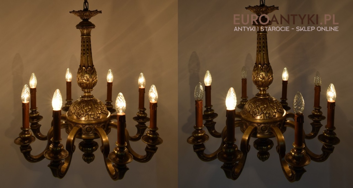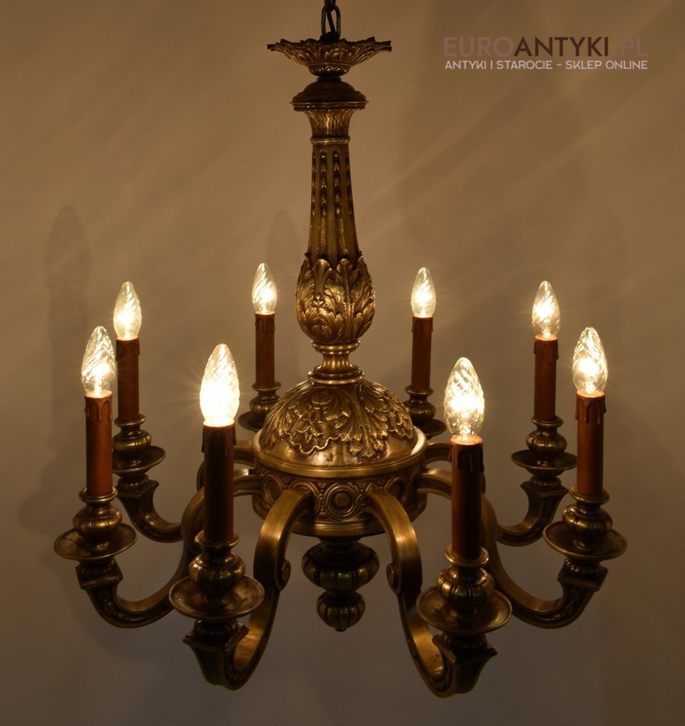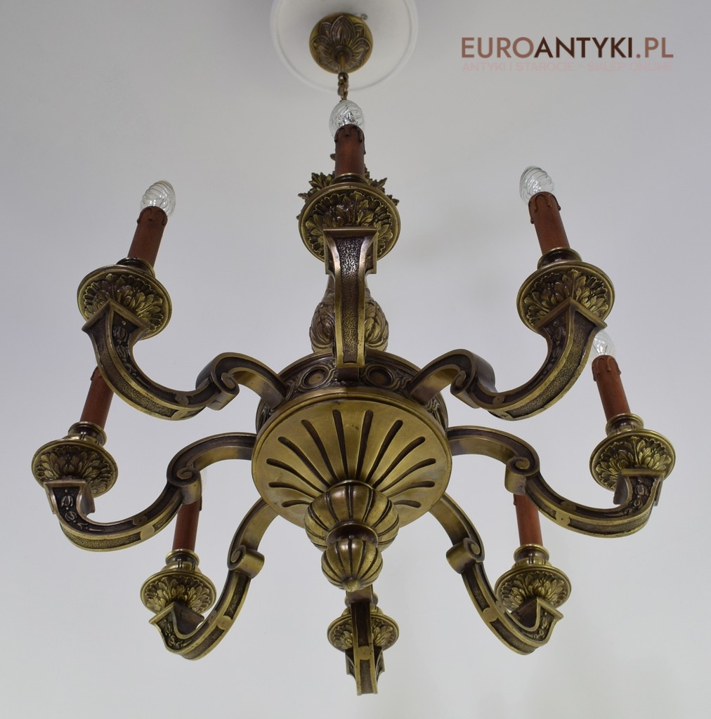Antyczny żyrandol z brązu do zamku, dworu, pałacu. Lampy antyki.