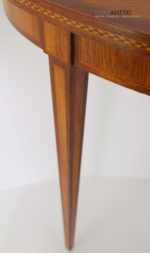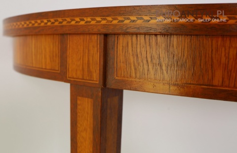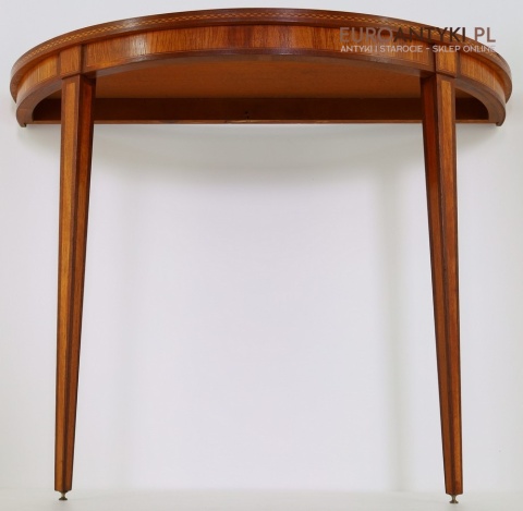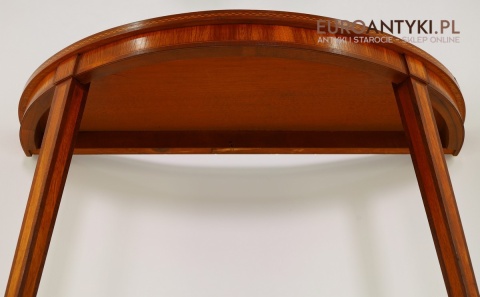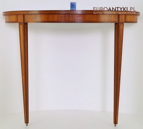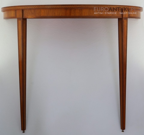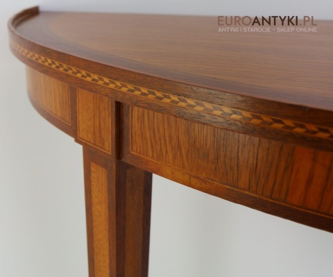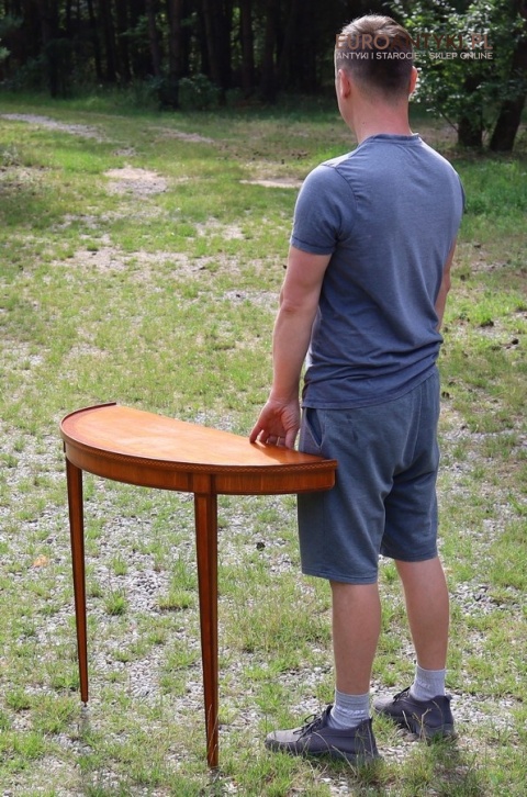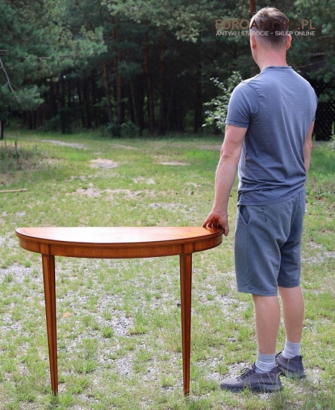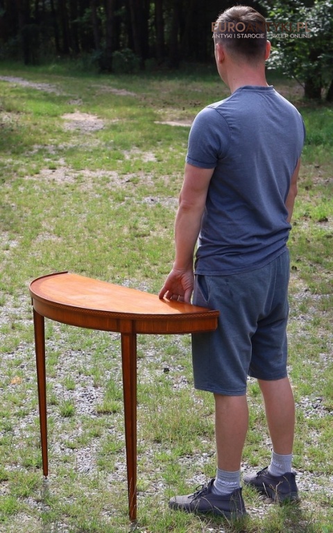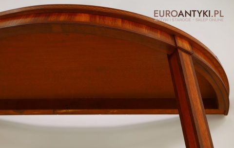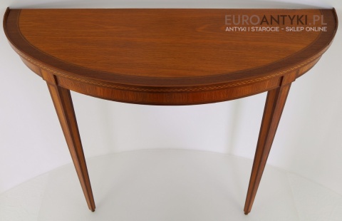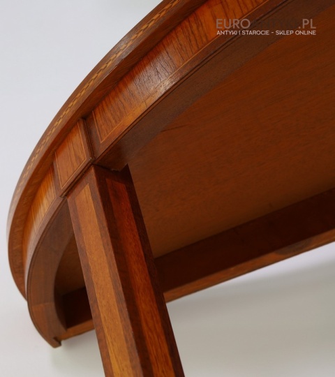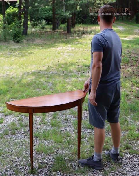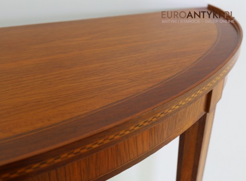 Styl to neoklasyczna/georgiańska forma – popularna w Anglii, Szwecji i Francji na przełomie XIX–XX w. Cechuje się prostym, symetrycznym półokrągłym blatem, lekko zwężanymi nóżkami i subtelną ornamentyką. Świetnie wpasuje się w salon, przedpokój, gabinet lub przestrzeń hotelową, gdzie dominują wnętrza z historią.