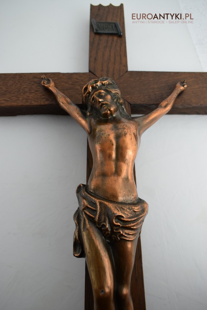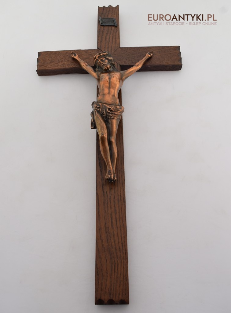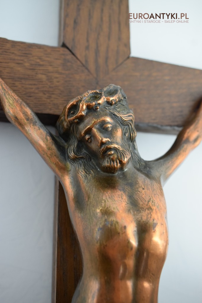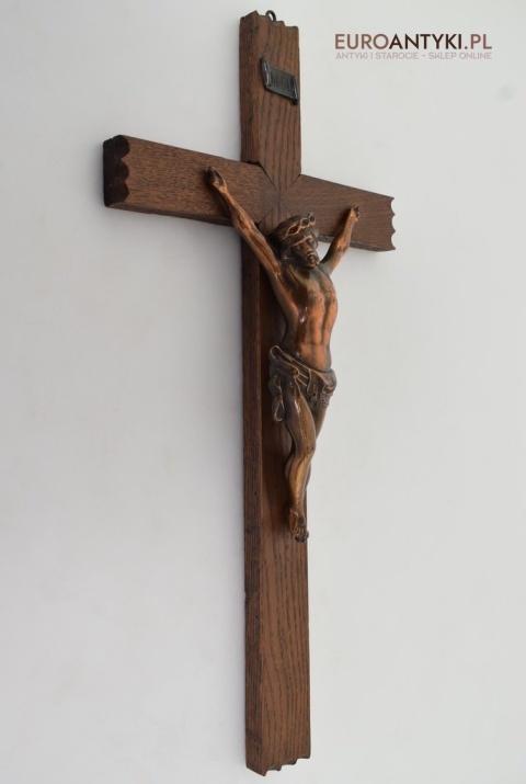 Antyk dębowy krzyż z Jezusem Chrystusem.