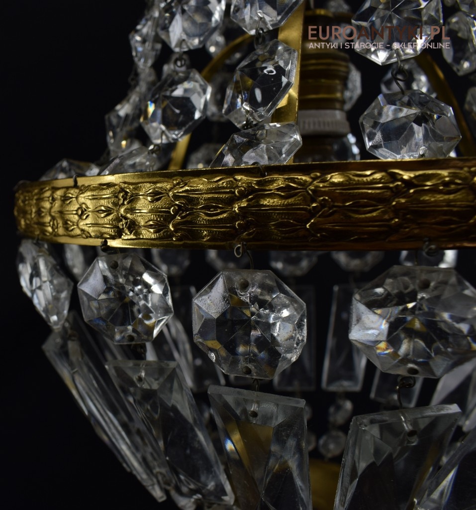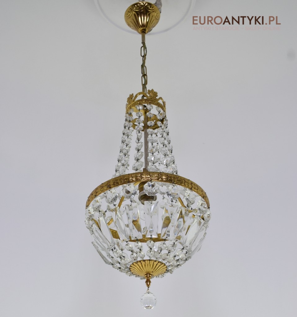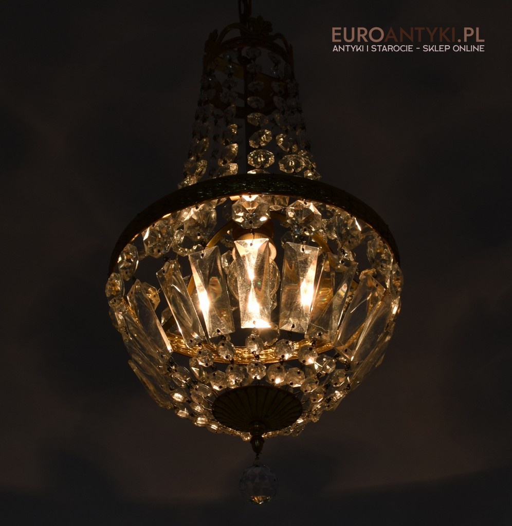 Mały śliczny zabytkowy żyrandol kryształowy.