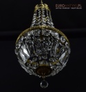 Tak zwana kryształowa grucha została sprowadzona z Austrii. Wykonana z pięknych odlewów mosiężnych i prawdziwych kryształów. Oryginalne kryształy rozczepiają światło i dają piękne mieniące się tęczowe kolory. Niestety ciężko to uwiecznić na zdjęciach, ale na żywo wygląda to obłędnie! 100% kompletne, w bardzo dobrym stanie.