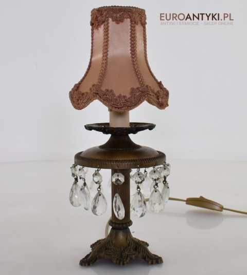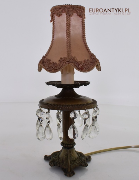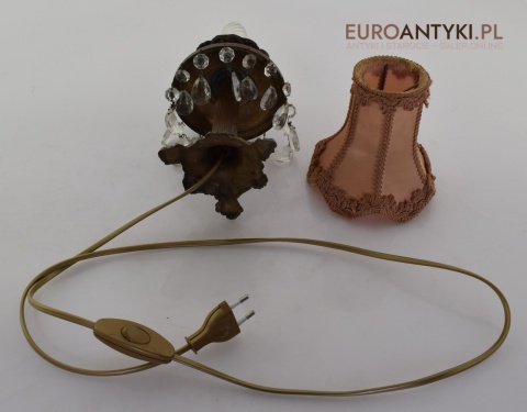 Sprowadzona z Francji. Pochodzi z połowy XX wieku. Wykonana z mosiądzu + prawdziwe kryształowe zawieszki.