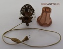 Całość bez uszkodzeń. Przedmiot kompletny, profesjonalnie wyczyszczony. Elektryka sprawna - sprawdzana przez naszego fachowca. Standardowe gniazdo elektryczne typu E14. Obecnie można kupić żarówki LED o różnym natężeniu, różnej barwie światła i różnym wyglądzie. Nawet mała żarówka może być dużej mocy i nie będzie pobierać wielu watt, przez co nie przegrzewa i nie uszkodzi kabli elektrycznych. Wszystkie lampy wysyłamy bez żarówek. Żarówki tego typu są łatwo dostępne w sklepach elektrycznych lub w internecie.