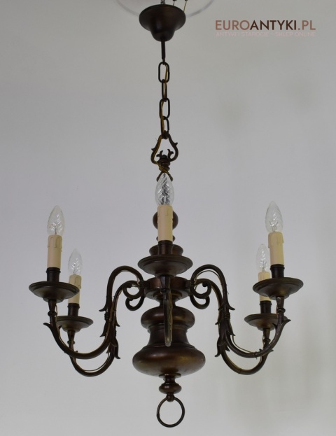 Klasyczny żyrandol salonowy z brązu, z połowy XX wieku.