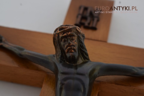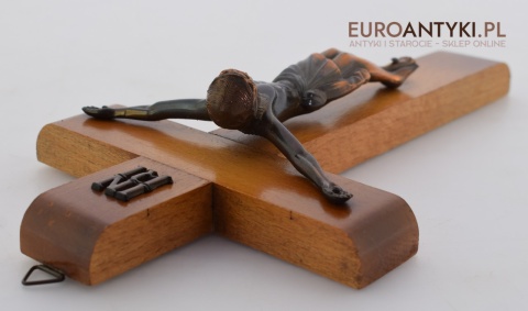 Art Deco - Stary krucyfiks ścienny z drewna i brązu – klasyczny styl sakralny
