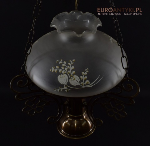 Lampa została wykonana z solidnego mosiądzu, który gwarantuje długotrwałą trwałość i odporność na uszkodzenia. Mosiądz to materiał o eleganckim wyglądzie i antycznym uroku, który doskonale komponuje się ze szklanym kloszem. Klosz zapewnia równomierne rozproszenie światła oraz subtelnie podkreśla rustykalny charakter lampy.