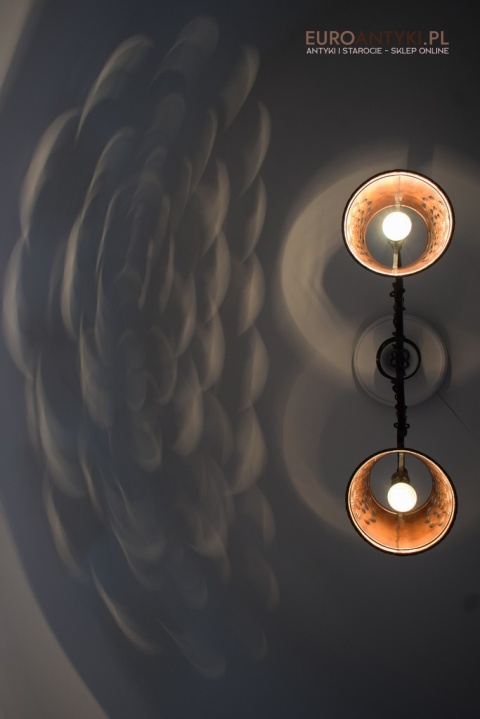 Całość bez uszkodzeń. Przedmiot kompletny, profesjonalnie wyczyszczony. Elektryka sprawna - sprawdzana przez naszego fachowca. Obecnie można kupić żarówki LED o różnym natężeniu, różnej barwie światła i różnym wyglądzie. Nawet mała żarówka może być dużej mocy i nie będzie pobierać wielu watt, przez co nie przegrzewa i nie uszkodzi kabli elektrycznych. Wszystkie lampy wysyłamy bez żarówek. Żarówki tego typu są łatwo dostępne w sklepach elektrycznych lub w internecie.