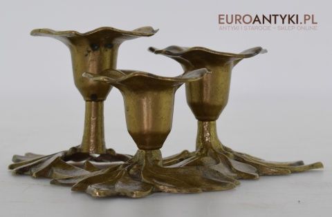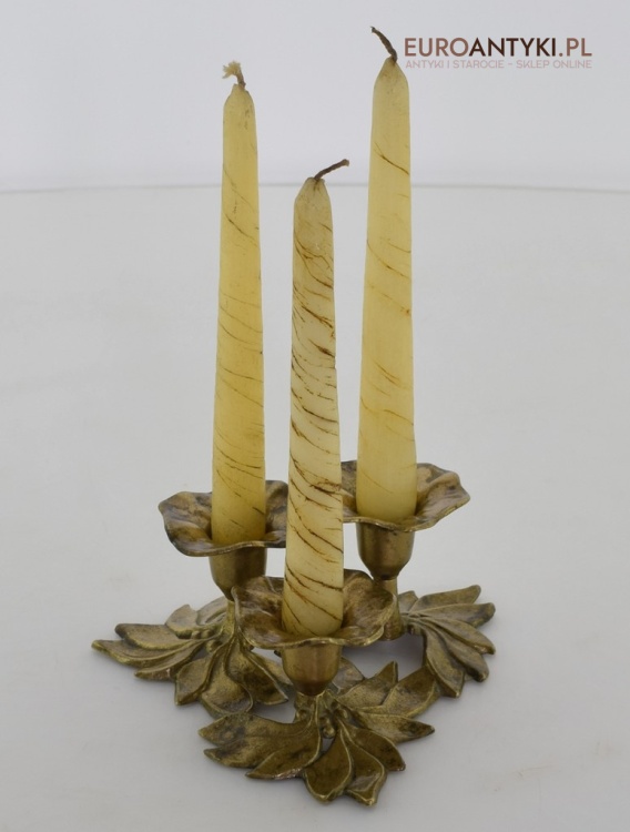 Świecznik charakteryzuje się misternie wykonanymi detalami w postaci stylizowanych liści, które tworzą jego bazę, nadając mu unikalny i wyrafinowany wygląd. Trzy ramiona umożliwiają równomierne rozłożenie światła, co czyni go idealnym do tworzenia atmosferycznego oświetlenia podczas uroczystych kolacji czy spokojnych wieczorów w domowym zaciszu.