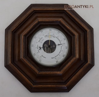 Oryginalne przyrządy pomiarowe z drewna i mosiądzu: barometry aneroidowe, termometry ścienne i higrometry – stylowe antyki retro i vintage do domu, biura i gabinetu.