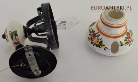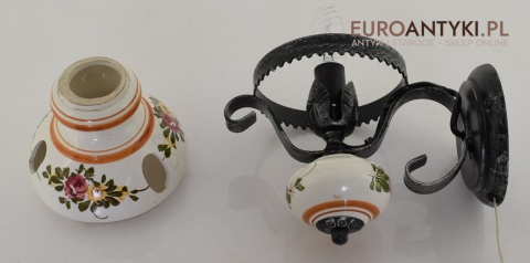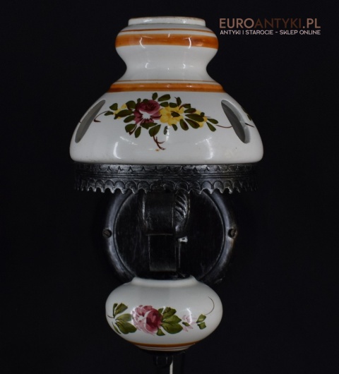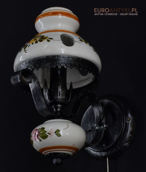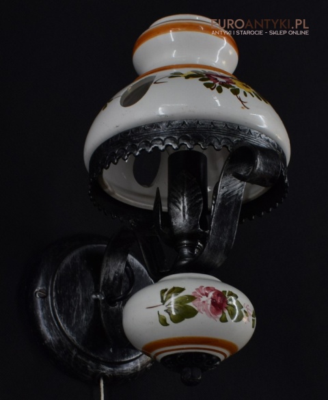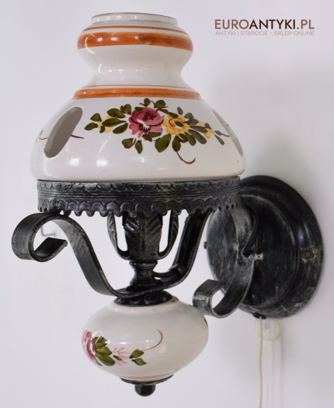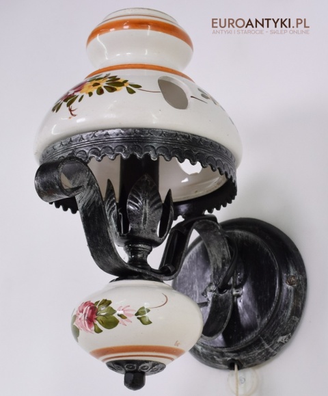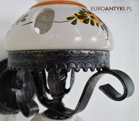Ten rustykalny kinkiet jest idealnym dodatkiem do wnętrz utrzymanych w góralskim lub wiejskim stylu. Sprowadzony z Francji, został wykonany z wysokiej jakości ceramiki i metalu, co nadaje mu trwałość i solidność. Kinkiet posiada specjalną zawieszkę na tylnej części, umożliwiającą łatwy montaż na ścianie.