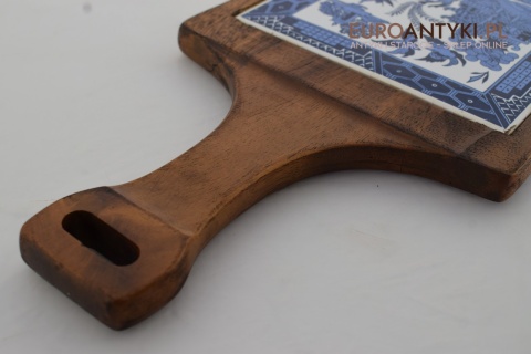 Z tyłu sygnowanie: HANDMADE. Na odwrocie tacki znajduje się informacja o jej ręcznym wykonaniu, co dodatkowo podnosi wartość tego dekoracyjnego przedmiotu. Stan tego antycznego elementu dekoracyjnego oceniany jest jako bardzo dobry, z zachowaniem drobnych, ale urokliwych śladów użytkowania, które są dowodem na jego autentyczność i długą historię.
