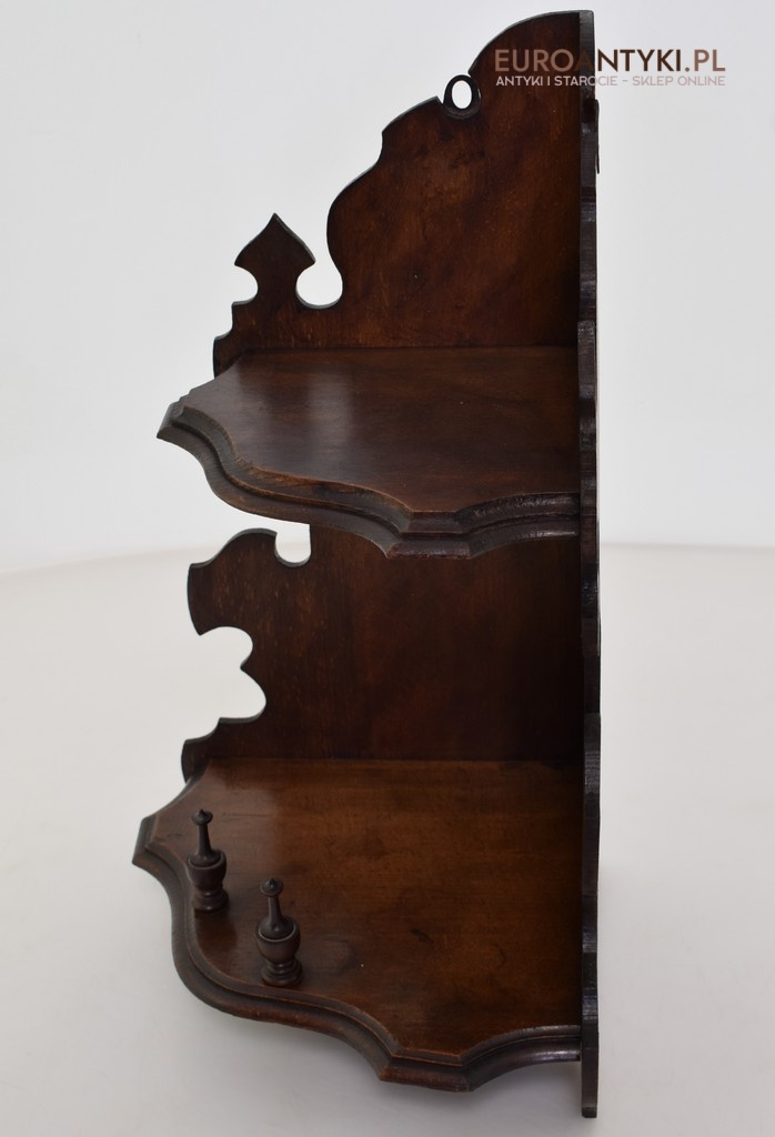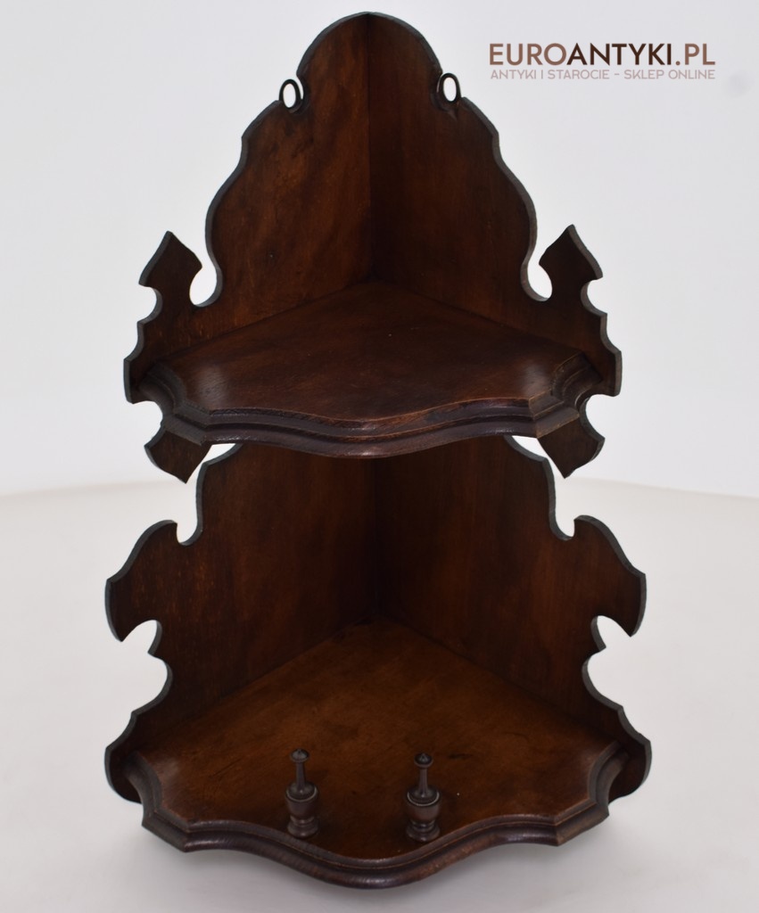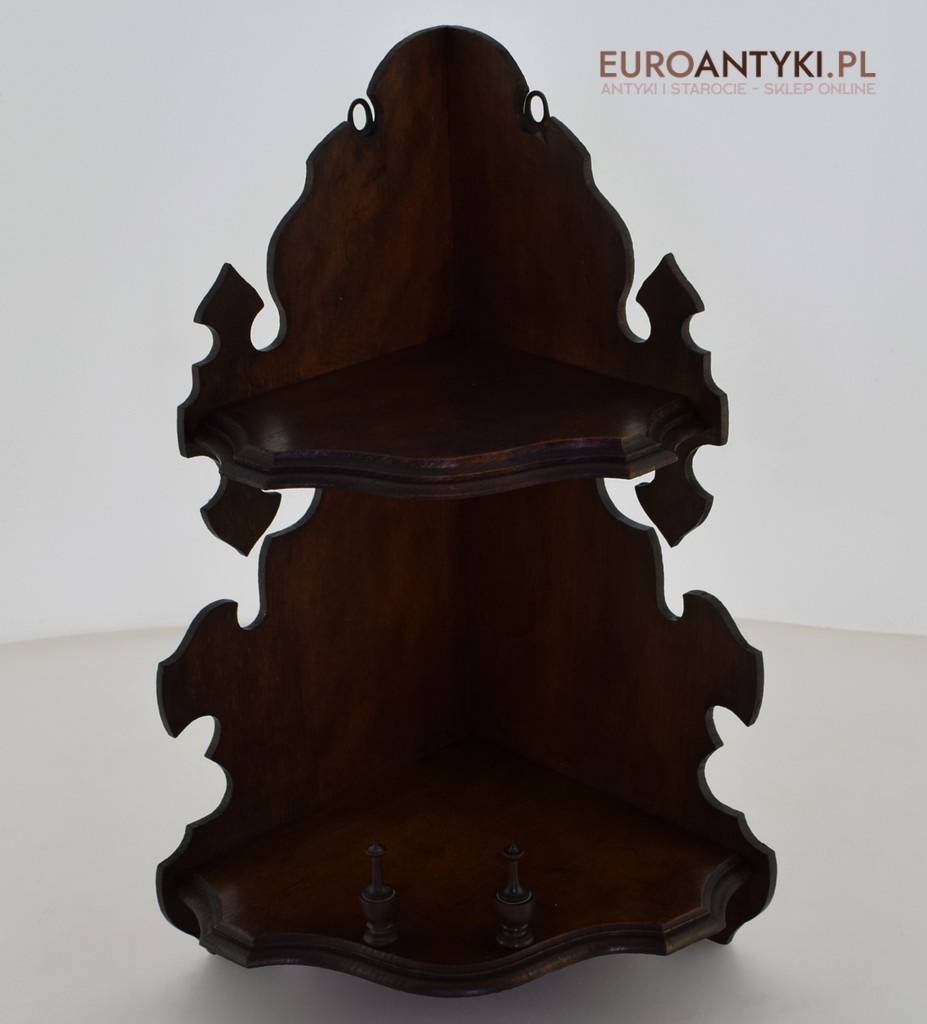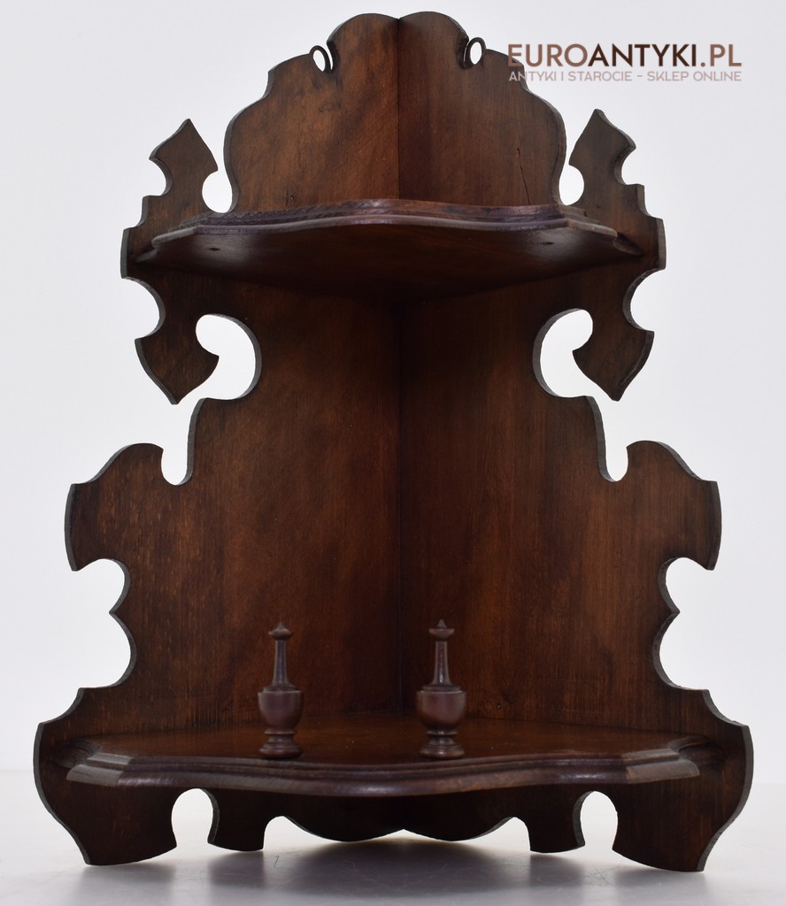 Drewniana rogowa półeczka z czasów grunderzeit. Antyki i sztuka.