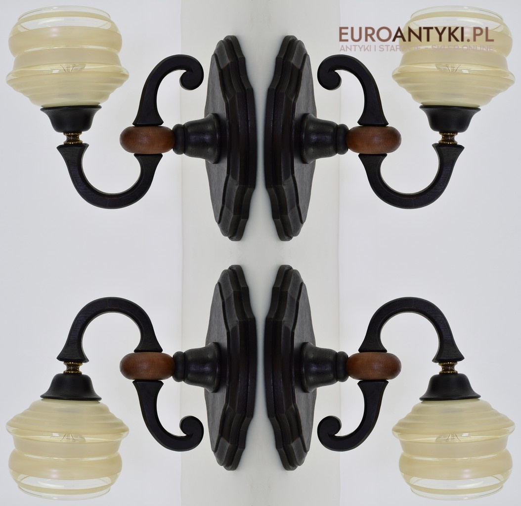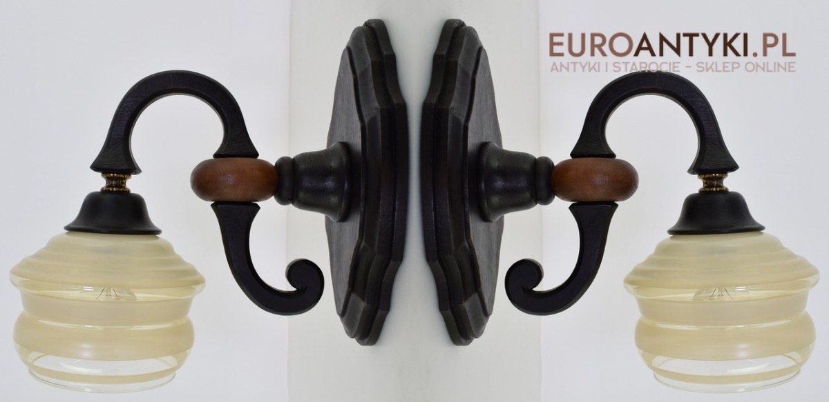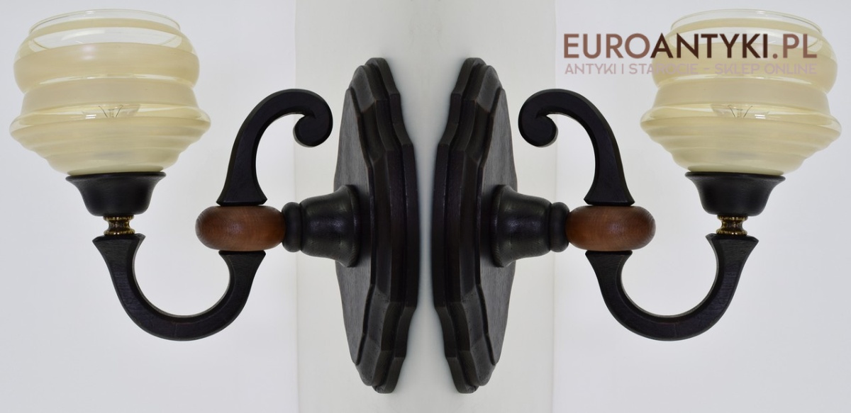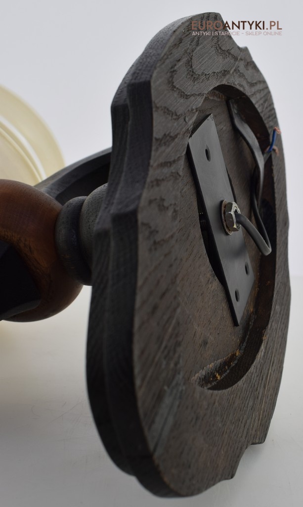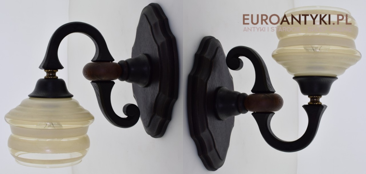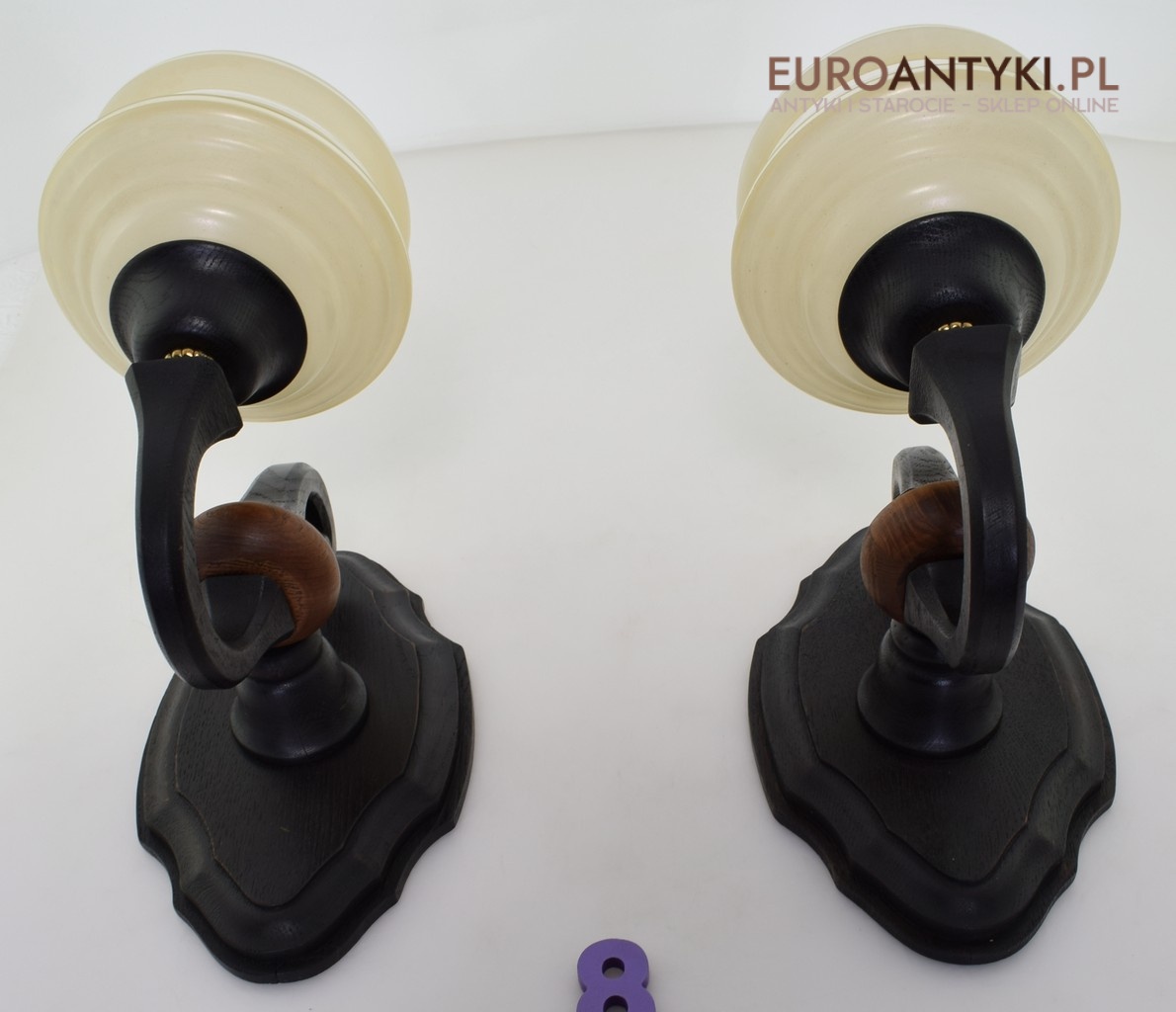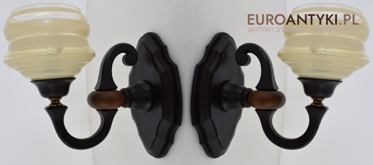 Fantastyczne kinkiety są wykonane z litego drewna dębowego. Klosze szklane w super stanie.
