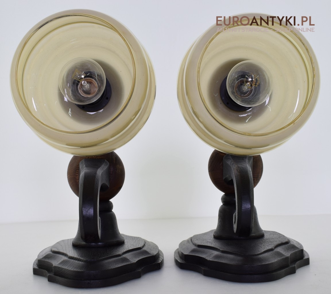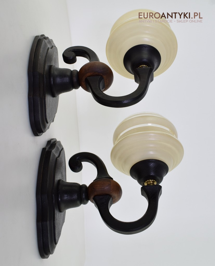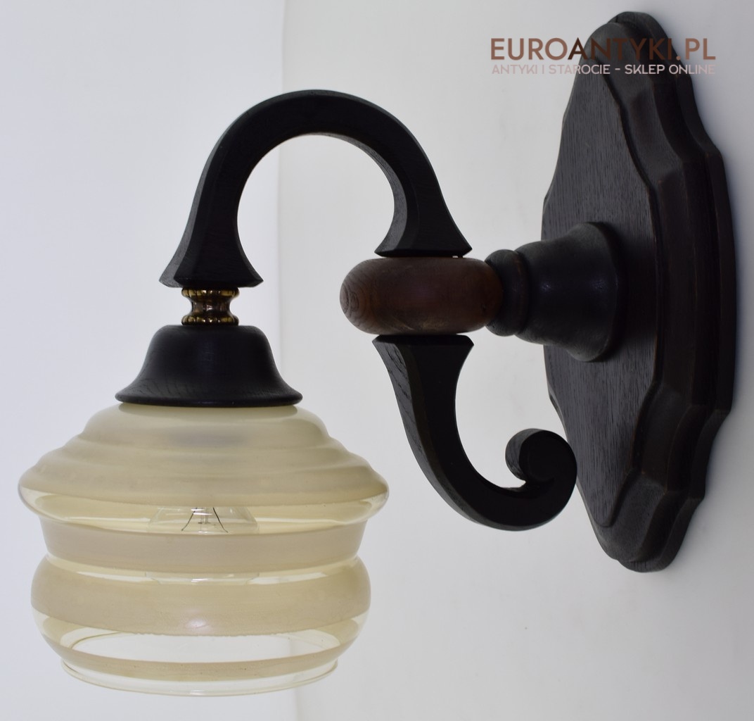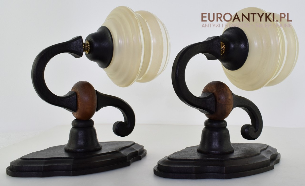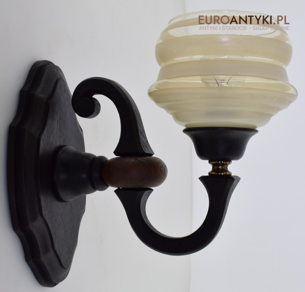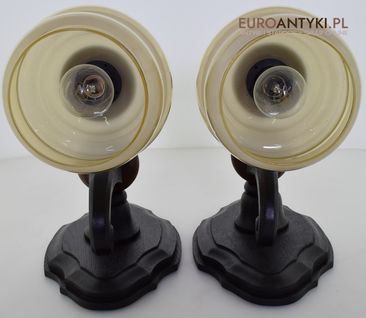 Fantastyczne kinkiety są wykonane z litego drewna dębowego. Klosze szklane w super stanie.