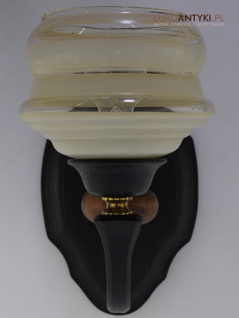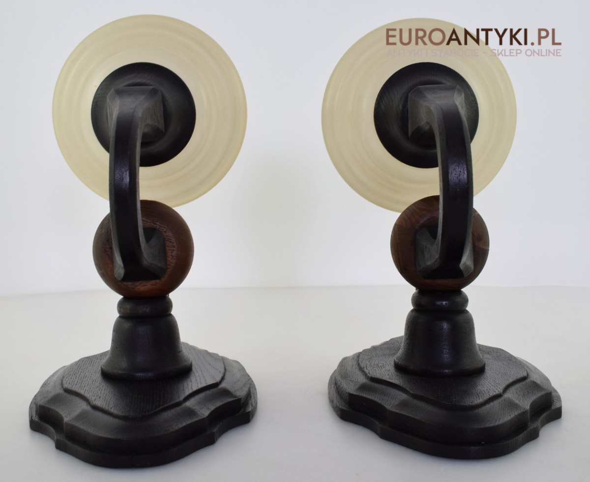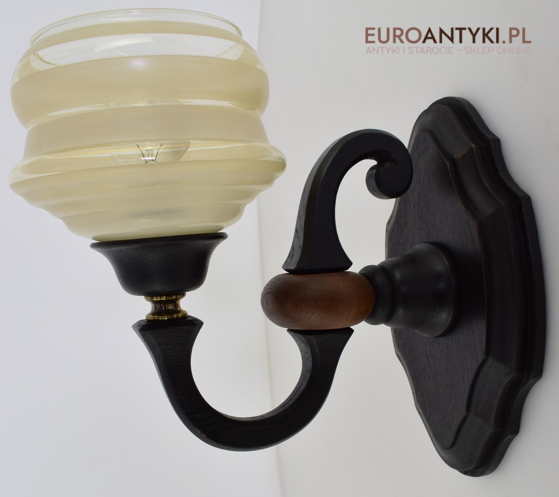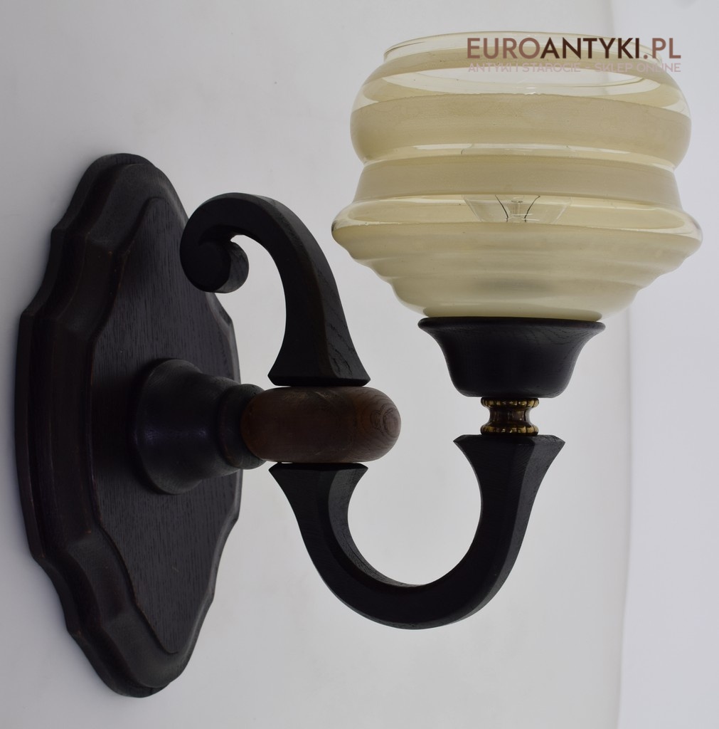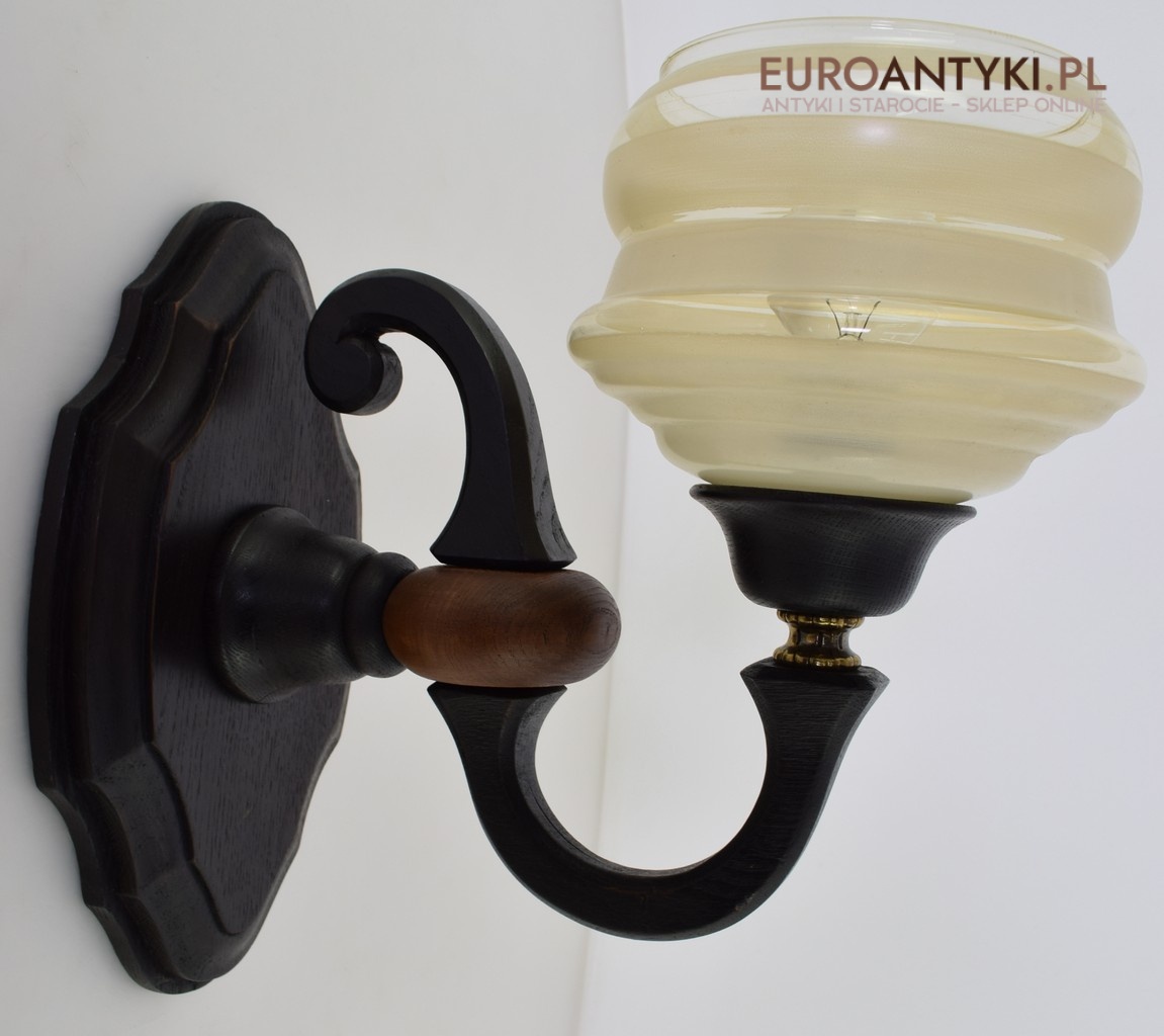 Fantastyczne kinkiety są wykonane z litego drewna dębowego. Klosze szklane w super stanie.