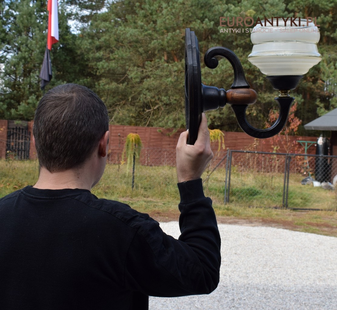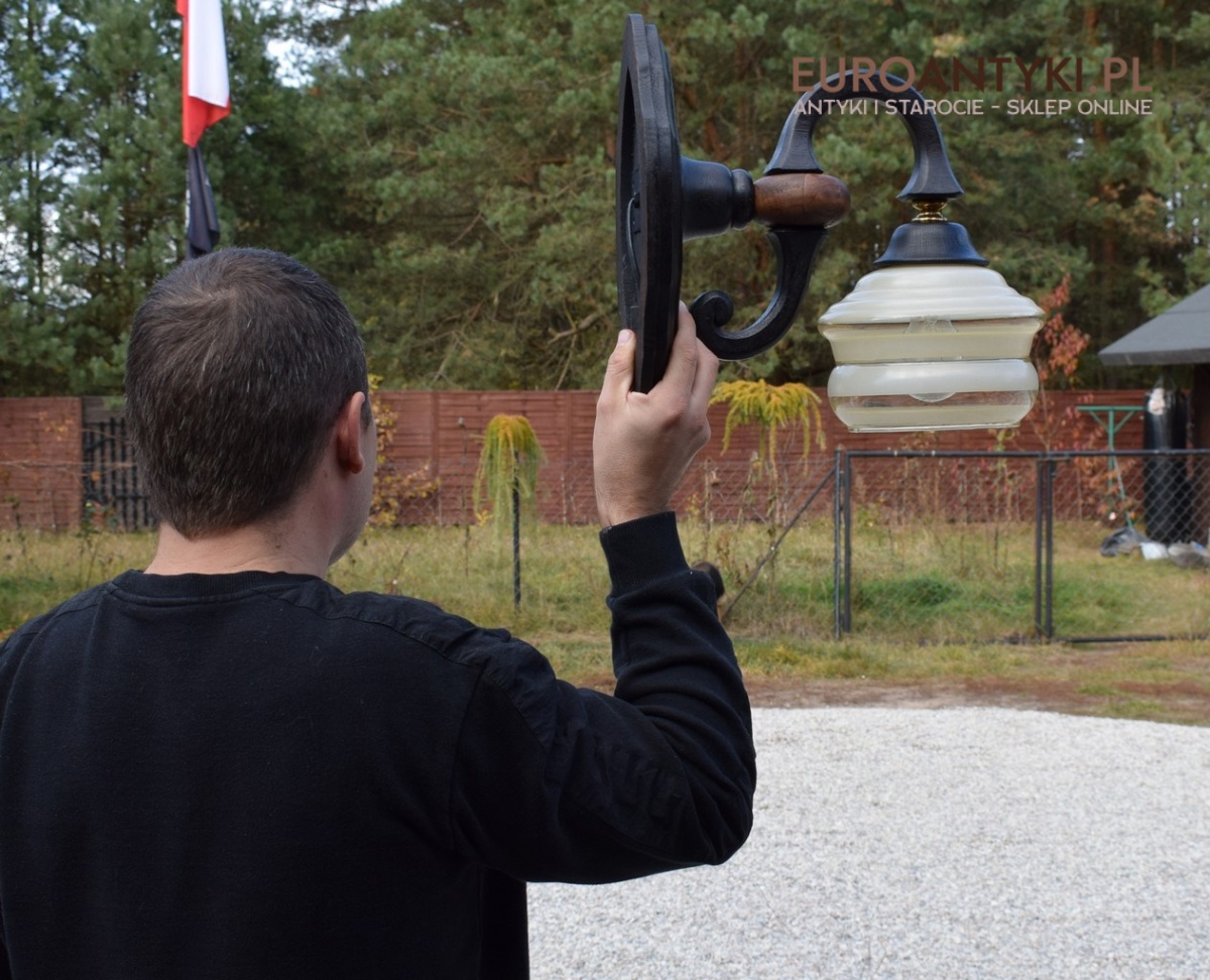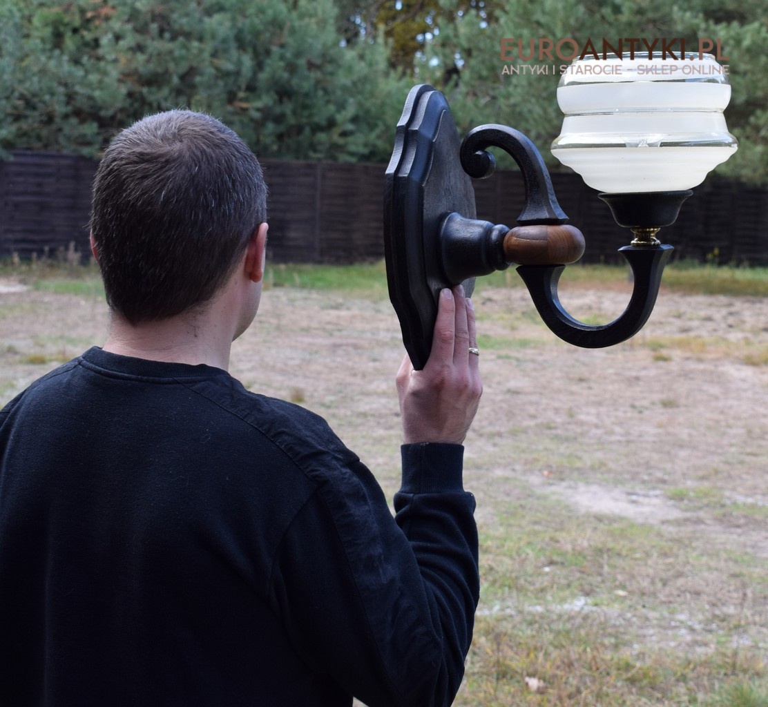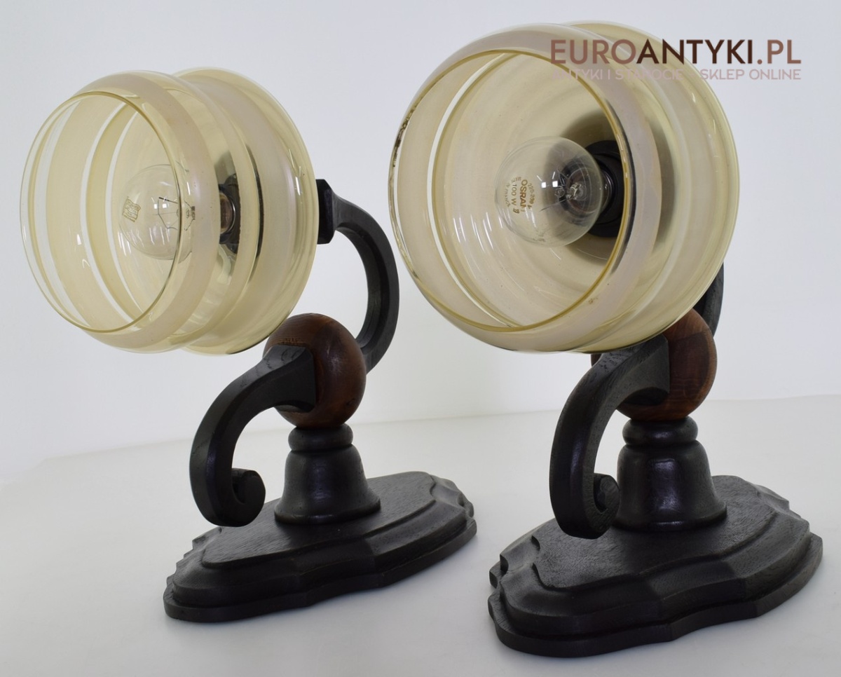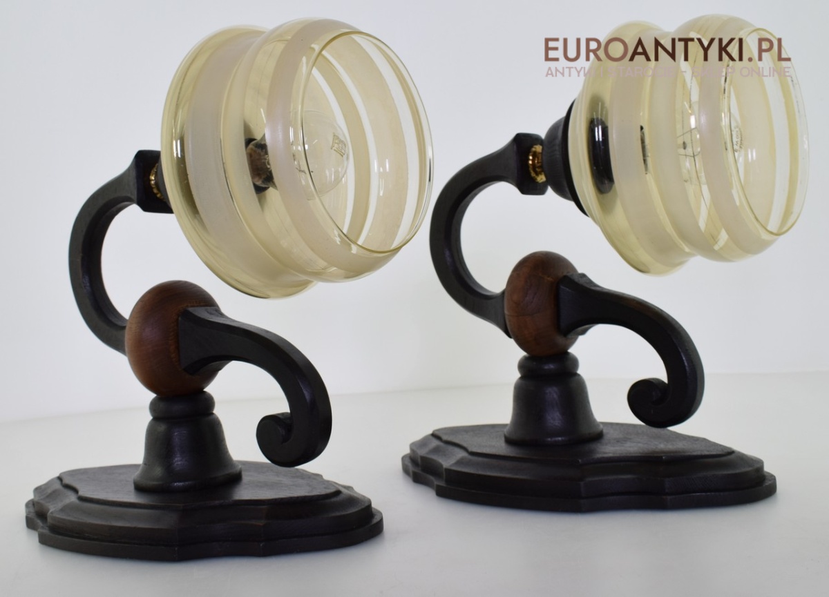 Fantastyczne kinkiety są wykonane z litego drewna dębowego. Klosze szklane w super stanie.