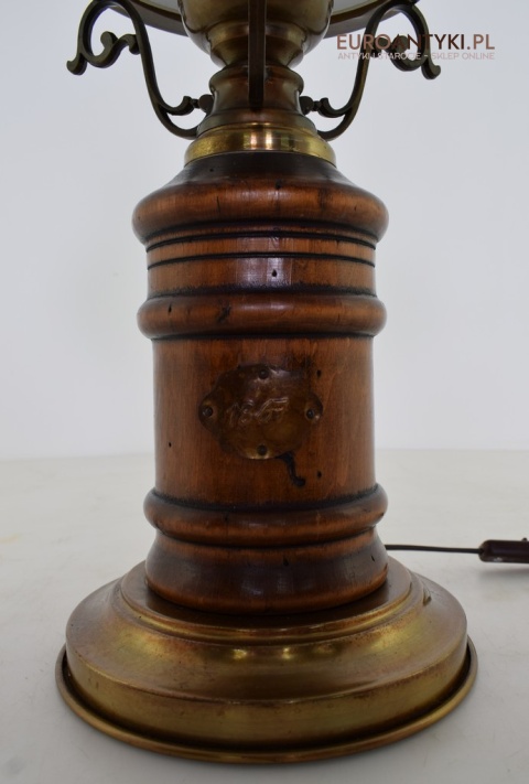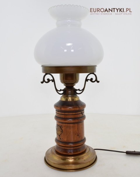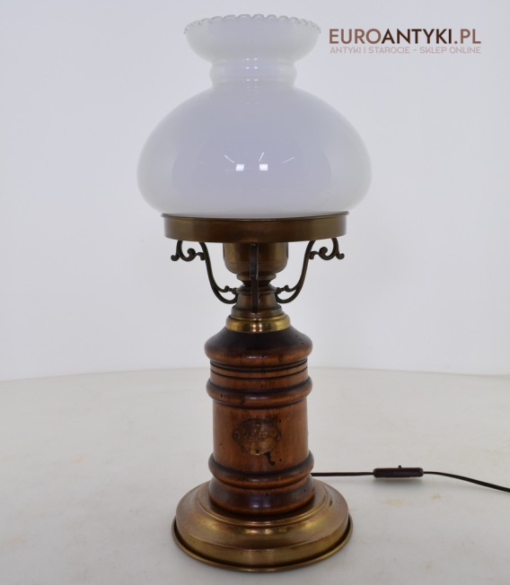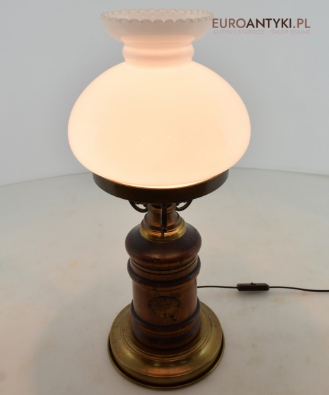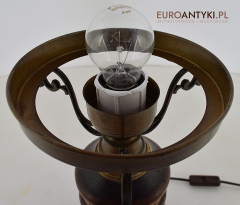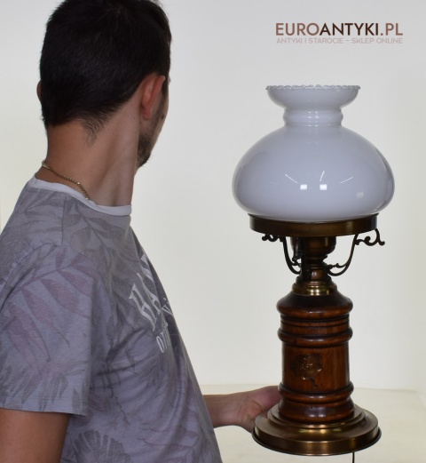 Duża rustykalna lampa stołowa z kloszem. Lampy retro.
