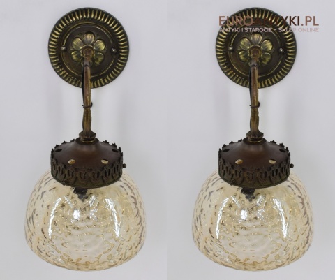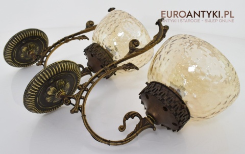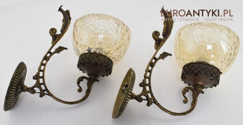 Sprowadzone z Austrii. Wykonane z masywnego litego mosiądzu + oryginalne, grube szklane klosze w idealnym stanie.