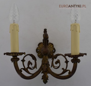 Przedstawiamy masywne kinkiety ścienne, które zachwycają swoją imponującą formą i klasycznym stylem. Wykonane z solidnego brązu, te barokowe kinkiety doskonale wpisują się w estetykę stylu Barok/Rokoko, łącząc bogate zdobienia z funkcjonalnością. Pochodzą z połowy XX wieku i są idealnym przykładem kunsztu artystycznego tamtego okresu. Sprowadzone z Francji. Każdy kinkiet w rozecie ma sprawny włącznik/wyłącznik dopływu prądu do żarówek.