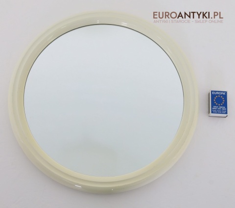 ✨ Przedmiotem oferty jest stylowe, retro lustro w lekkiej kremowej ramie wykonanej z tworzywa, pochodzące z lat 70–80. Ta minimalistyczna dekoracja świetnie sprawdzi się zarówno w klasycznych wnętrzach, jak i w stylowych aranżacjach w klimacie skandynawskim, boho czy retro. Posiada lekką głębokość, dzięki czemu doskonale podkreśli przestrzeń bez dominacji.