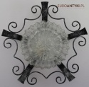 Daliśmy nową elektrykę. Całość bez uszkodzeń, kompletna. Elektryka sprawna. Standardowe gniazdo typu E27 o maksymalnej mocy 80 watt. Wszystkie lampy wysyłamy bez żarówek. W dzisiejszych czasach można kupić żarówki LEDowe o różnej barwie światła, o różnym natężeniu i o różnym kształcie. Więc tak na prawdę malutka żarówka może być potężnej mocy i nie pobierać wielu wattów, przez co nie spali lub nie przegrzewa kabli elektrycznych.