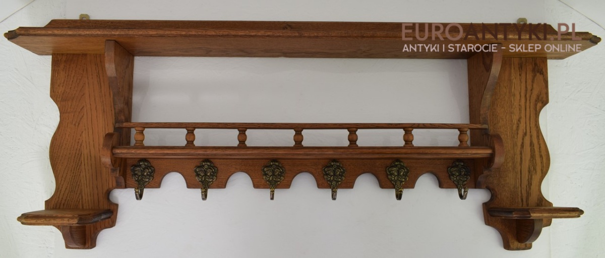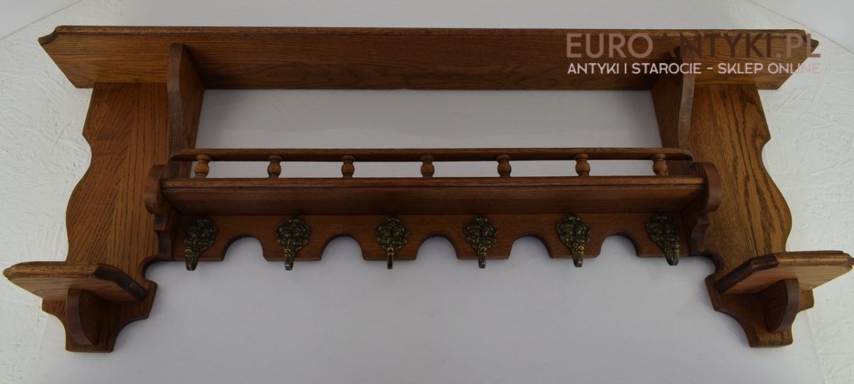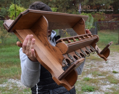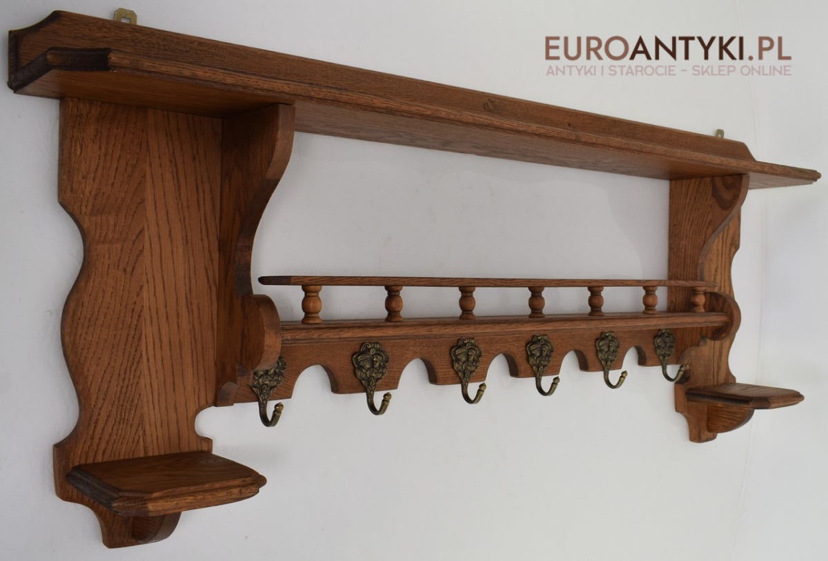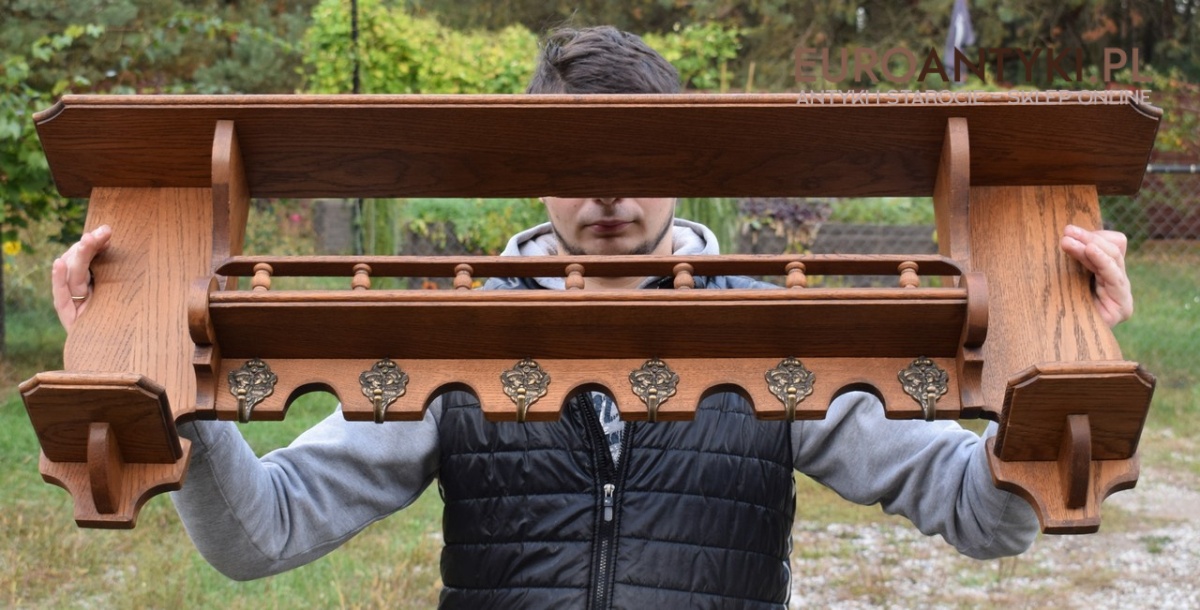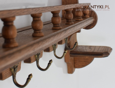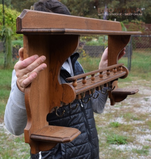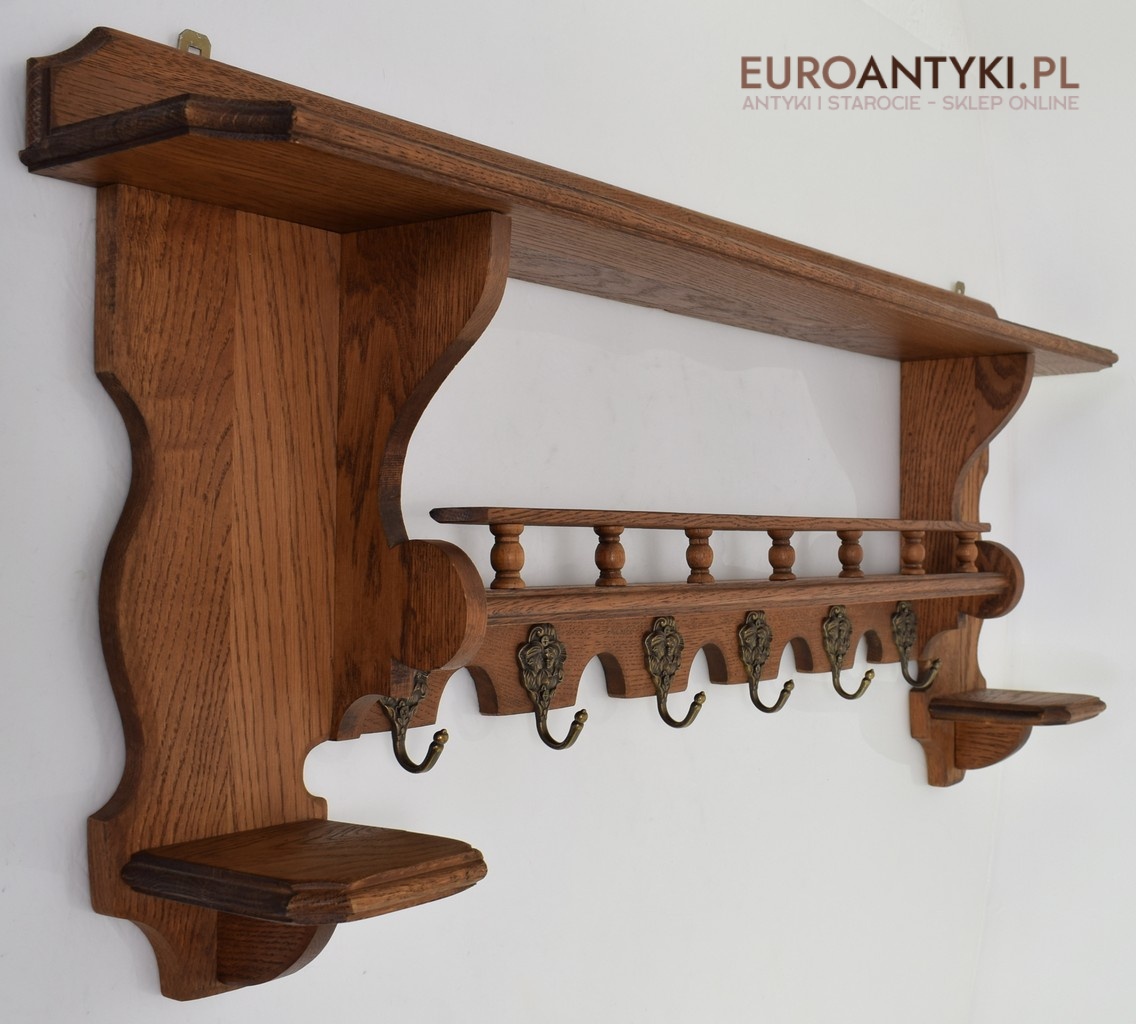 Duże rustykalne wieszaki kuchenne półka z dawnych lat.