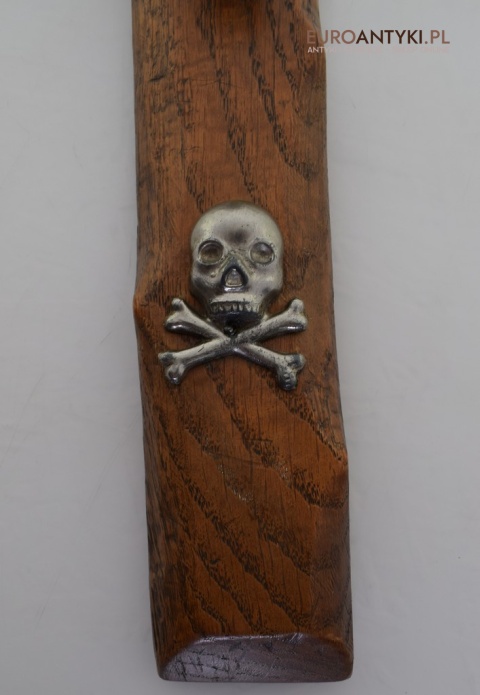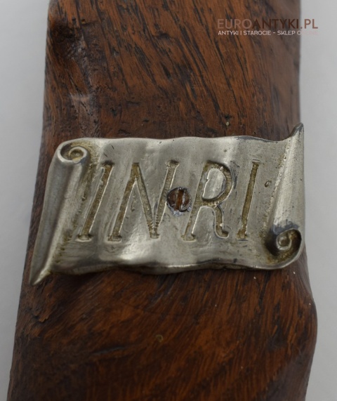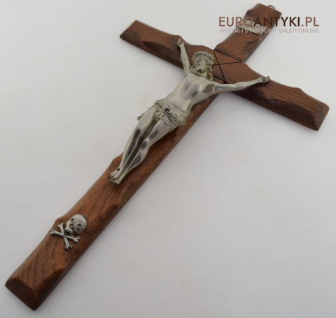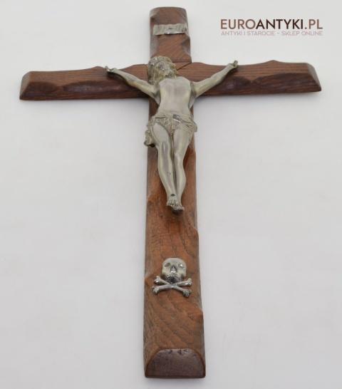 Sprowadzony z Francji. Wykonany z litego dębu. Postać Jezusa Chrystusa, czaszka i napis INRi, są wykonane z jakiegoś metalu.