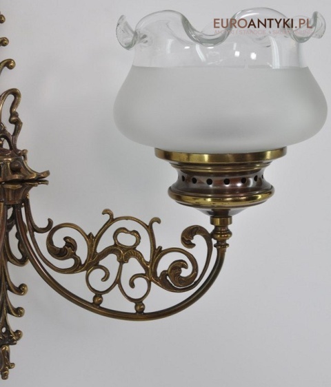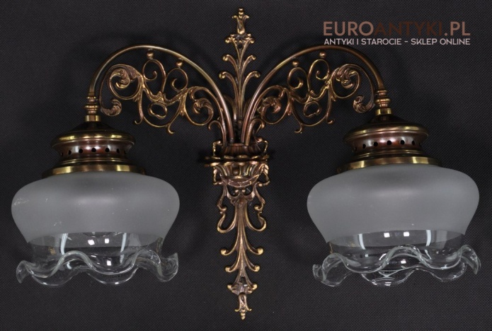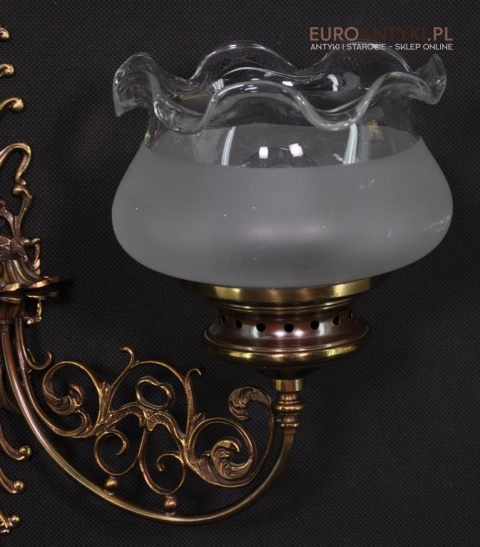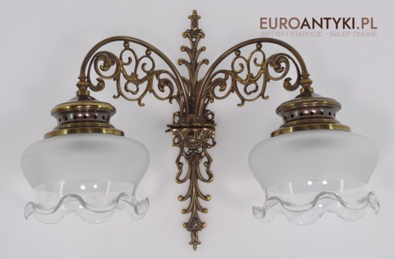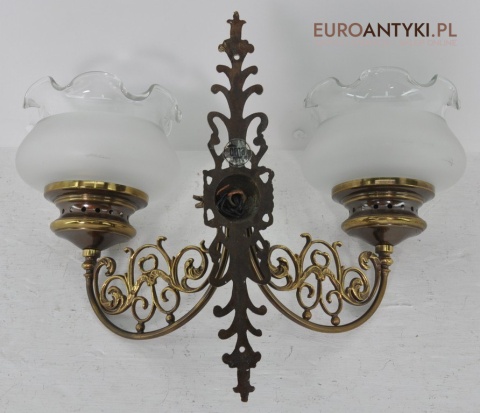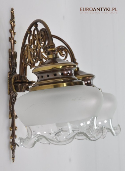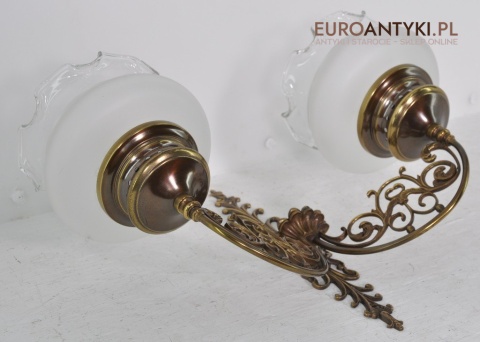 Duży kinkiet z brązu z 2 kloszami stara lampa vintage retro antyk