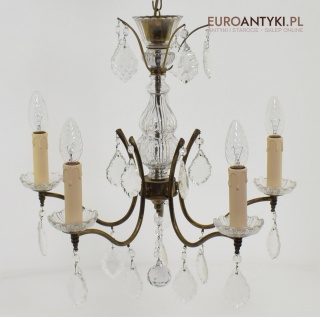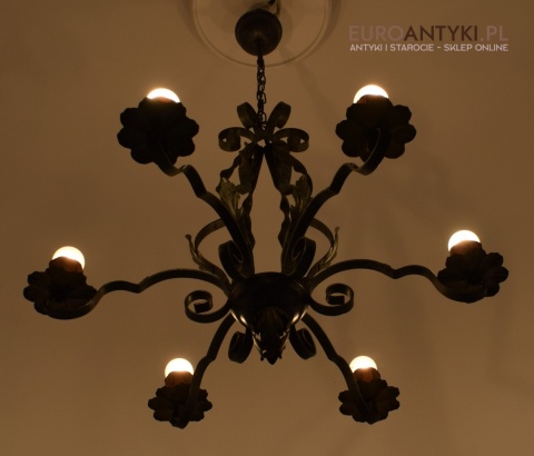 Całość bez uszkodzeń. Kompletna. Elektryka sprawna. Standardowe gniazda typu E27 o maksymalnej mocy 80 watt. Wszystkie lampy wysyłamy bez żarówek. W dzisiejszych czasach można kupić żarówki LEDowe o różnej barwie światła, o różnym natężeniu i o różnym kształcie. Więc tak na prawdę malutka żarówka może być potężnej mocy i nie pobierać wielu wattów, przez co nie spali lub nie przegrzewa kabli elektrycznych.