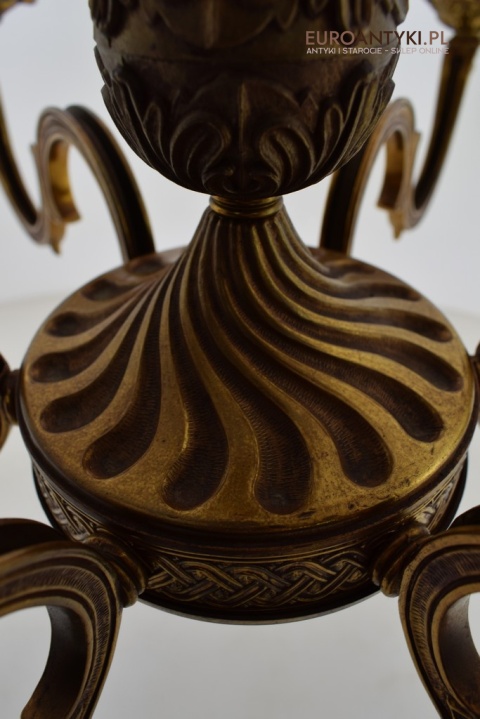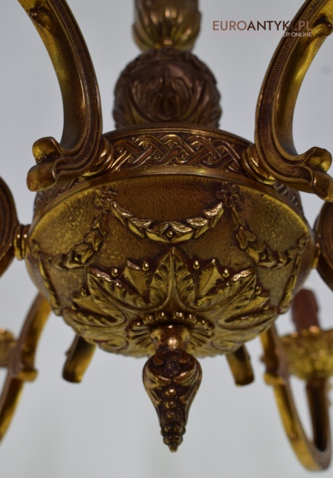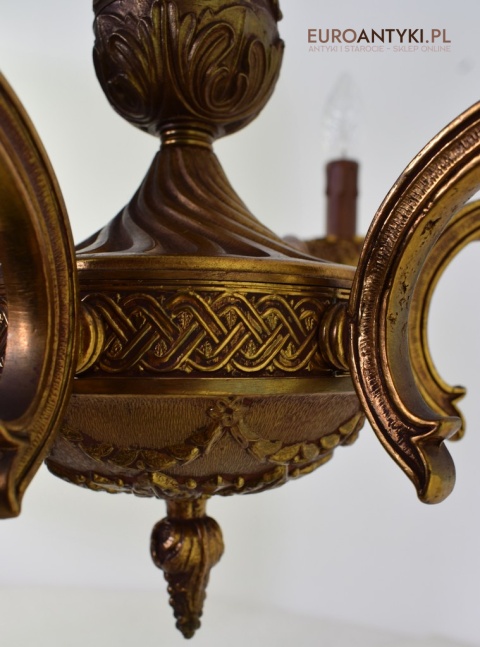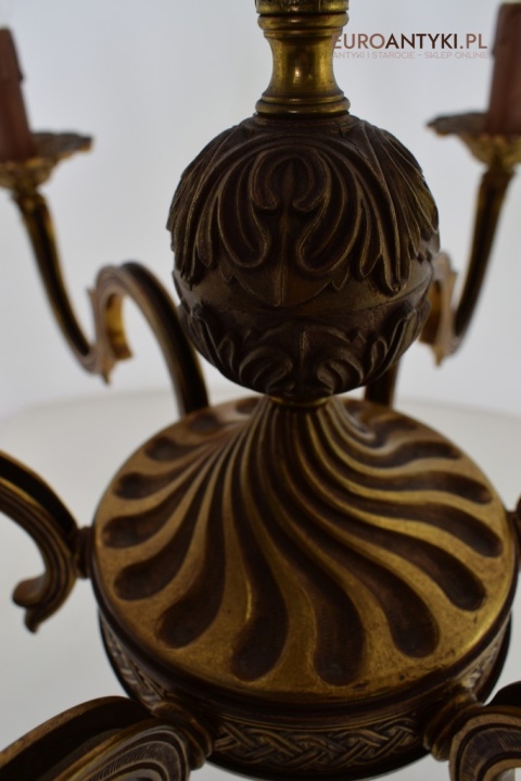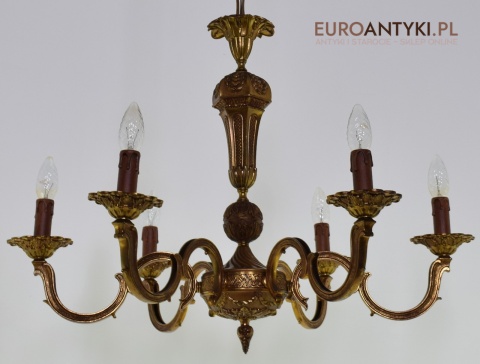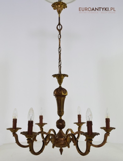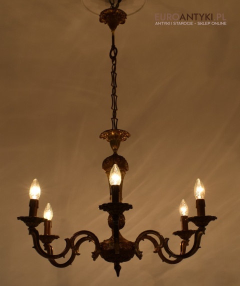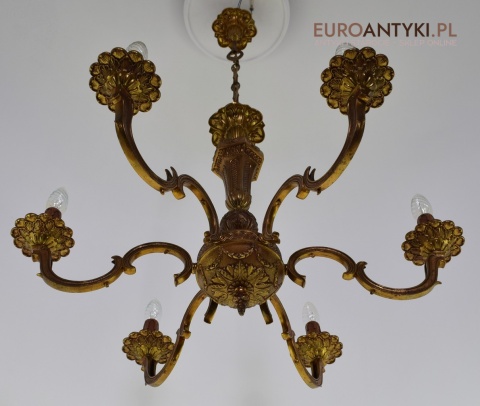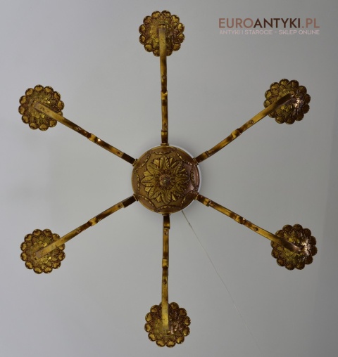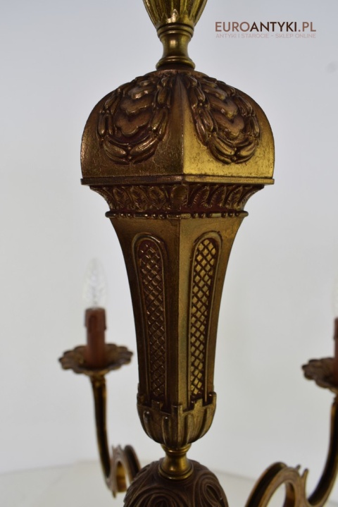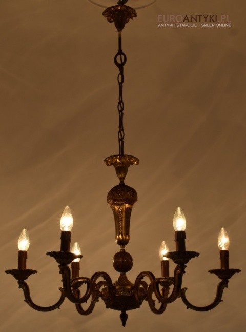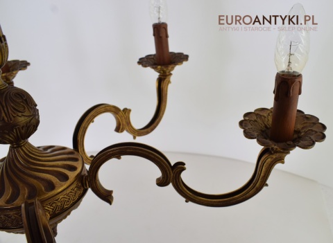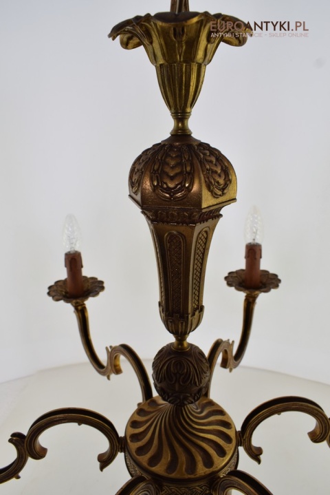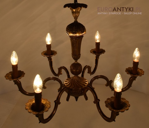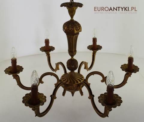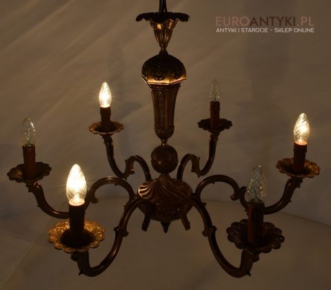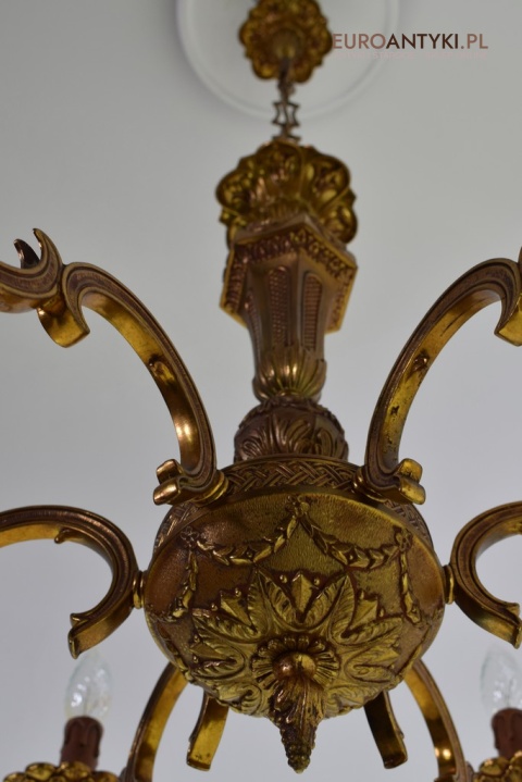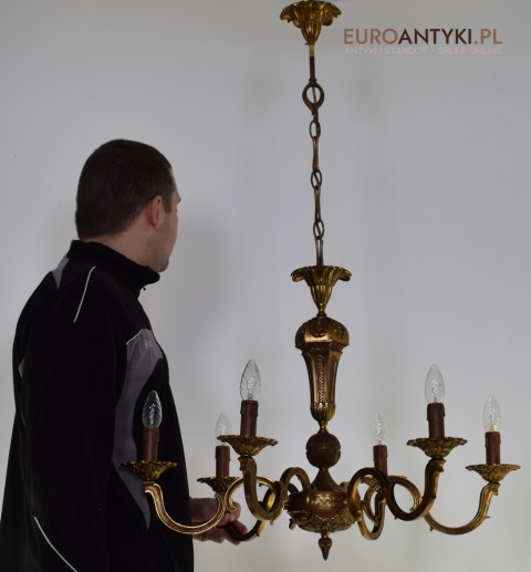 Duży mosiężny żyrandol salonowy. Lampy antyczne unikatowe.