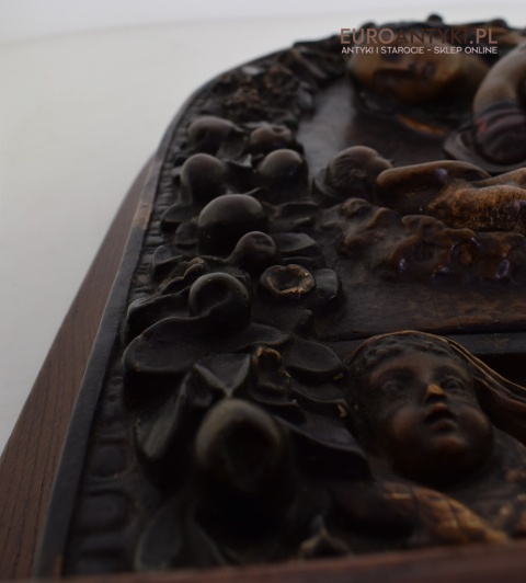 Egzemplarz w doskonałym stanie zachowania. Oryginalna powierzchnia zachowała pełen urok, bez napraw, doróbek czy uszkodzeń. Całość została jedynie delikatnie odświeżona, co podkreśla piękno rzeźby i szlachetną patynę. Nie ma śladów po insektach ani brzydkich zapachów – w pełni gotowa do ekspozycji.