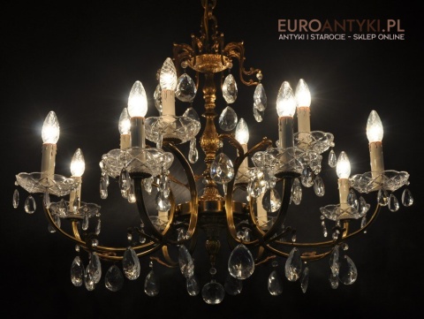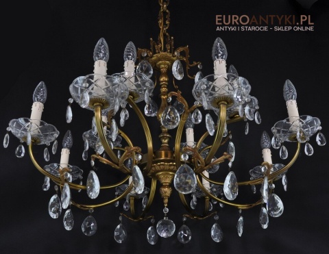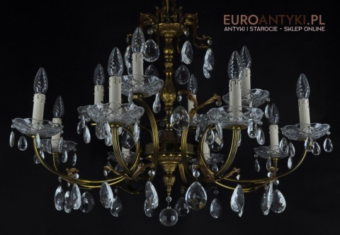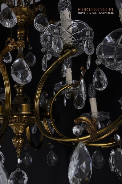 Duży pałacowy salonowy żyrandol kryształowy w stylu Ludwik XVI antyk