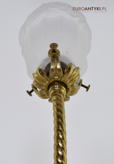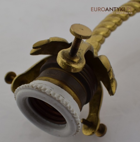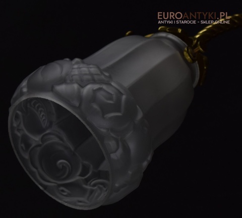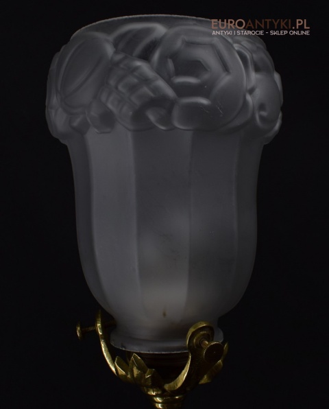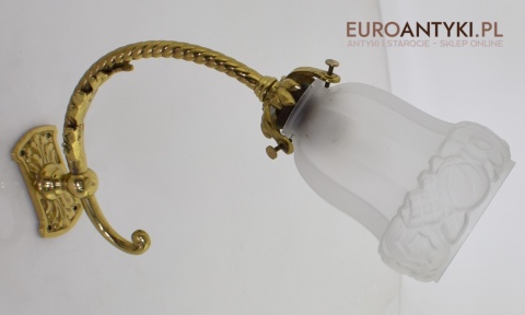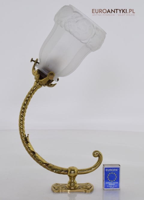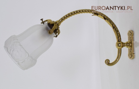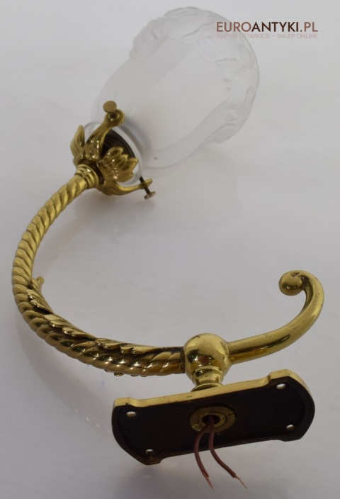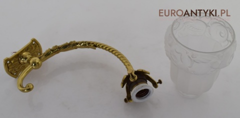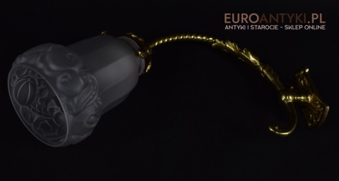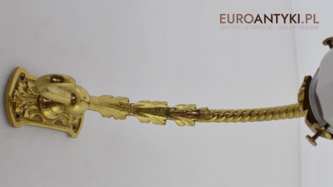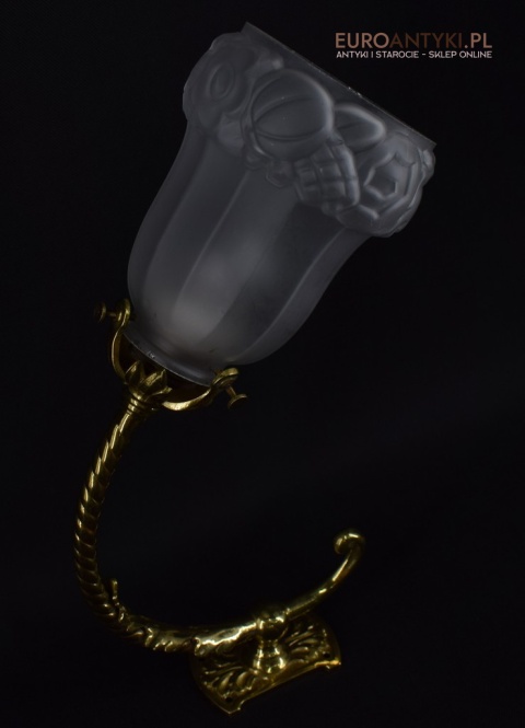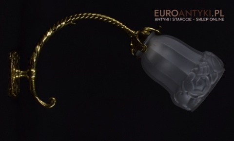 Antyczne lampy w tym stylu to idealne rozwiązanie dla osób poszukujących eleganckiego oświetlenia do swojego pałacu, zamku lub dworu. Ten zabytkowy kinkiet został sprowadzony prosto z Francji i jest wykonany z brązu, co nadaje mu wyjątkowego uroku. Dodatkowo, szklany klosz z epoki secesyjnej jest w idealnym stanie. Kinkiet pochodzi z początku XX wieku. Elektryka sprawna - sprawdzana.