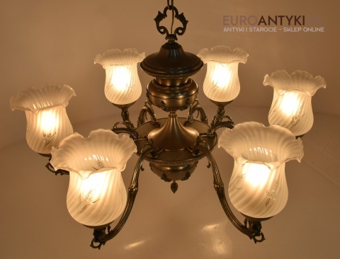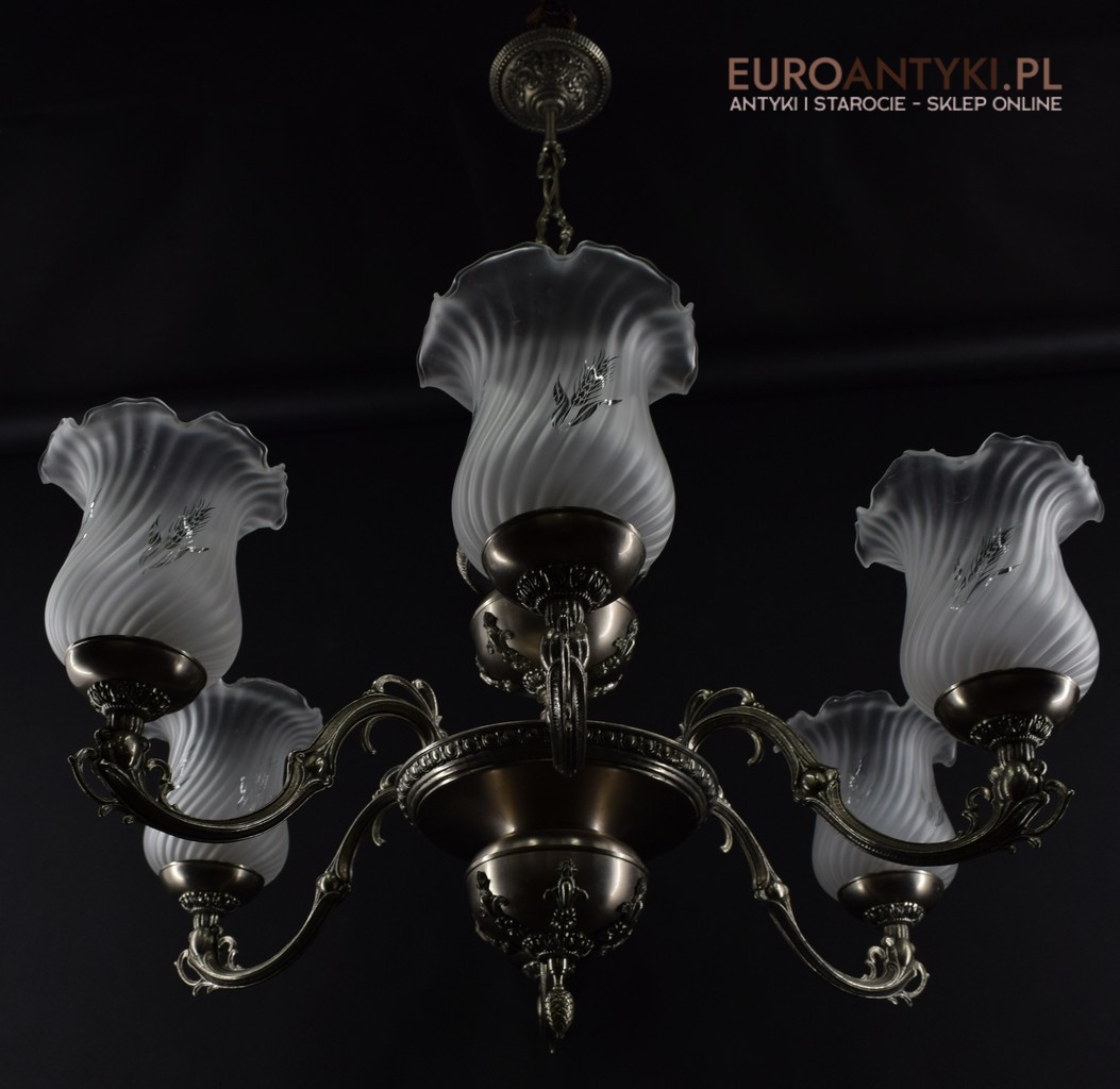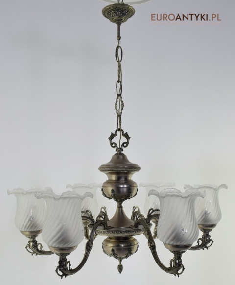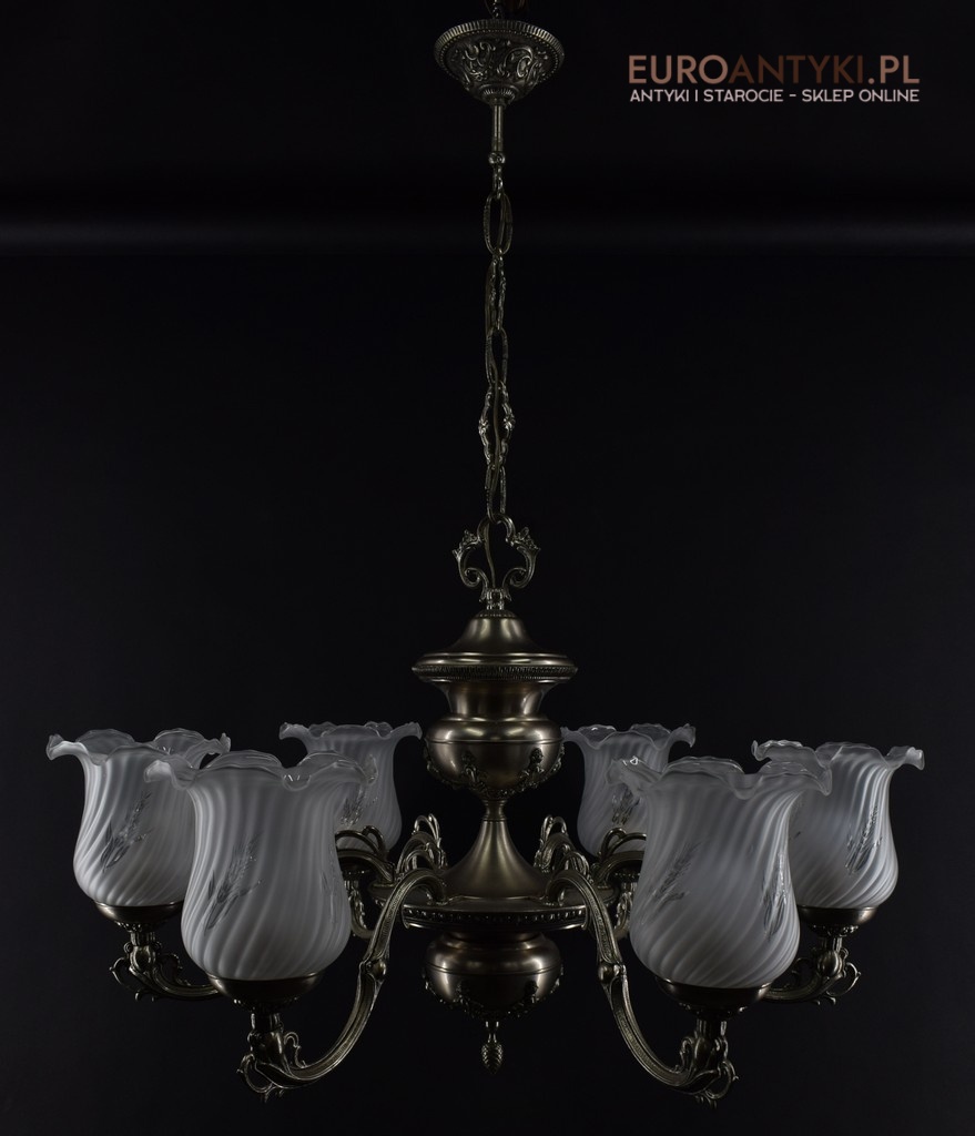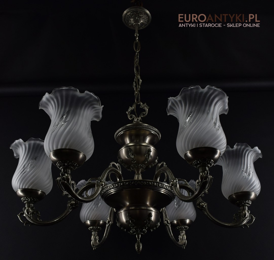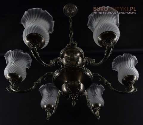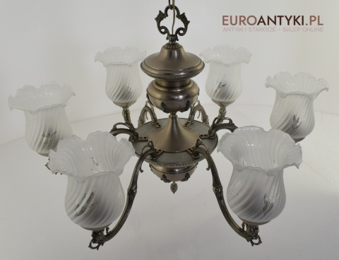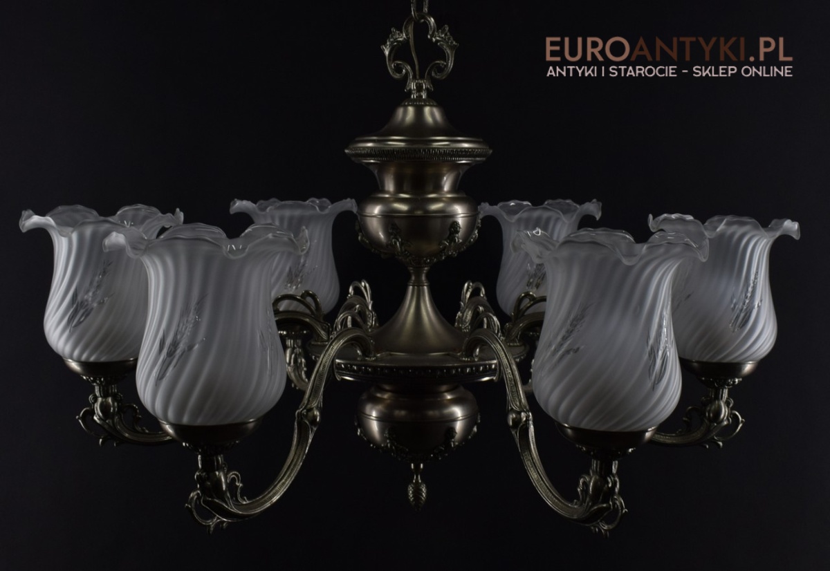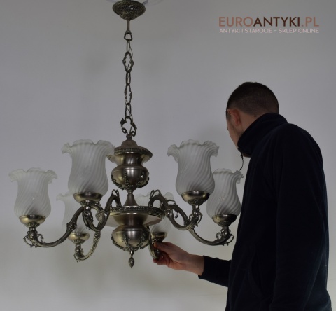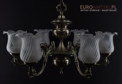 Duży starodawny srebrny żyrandol z kloszami w stylu Empire.