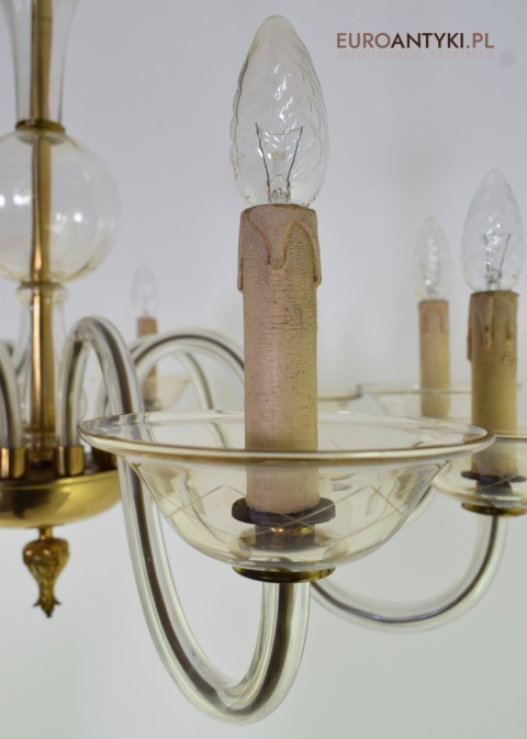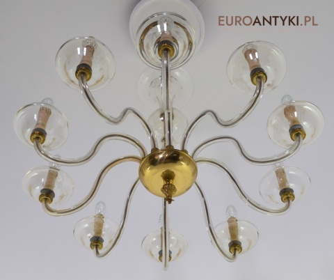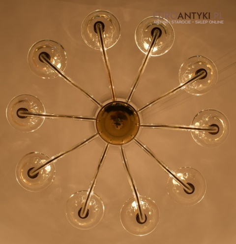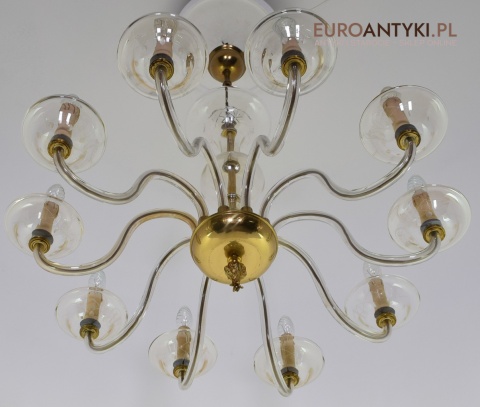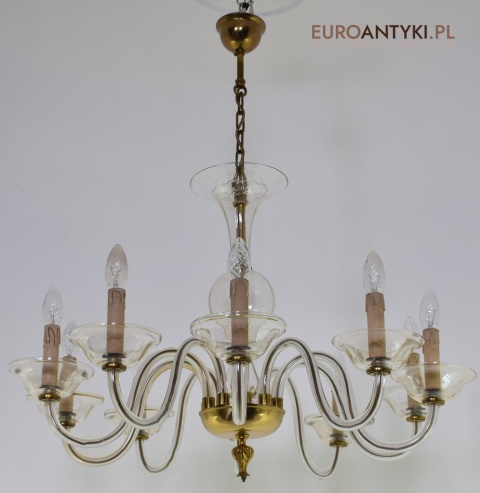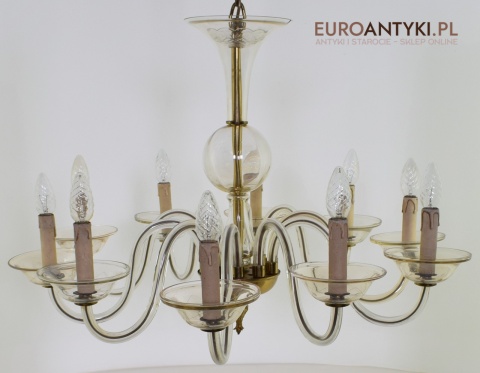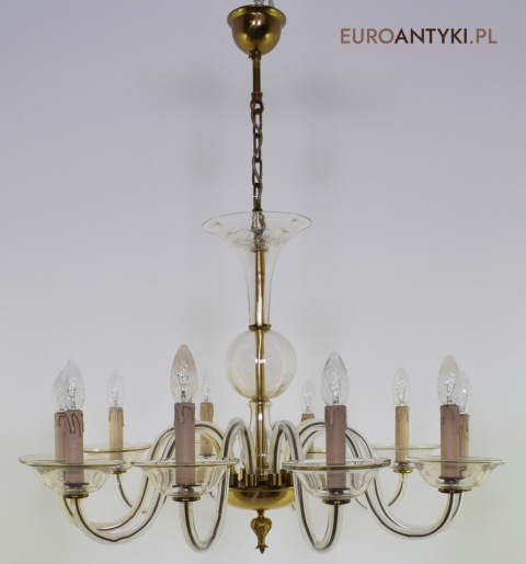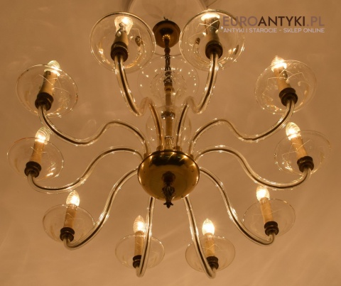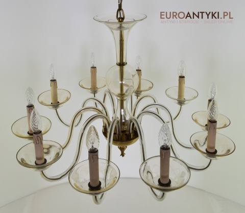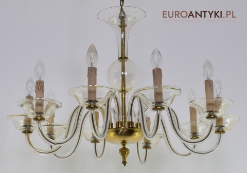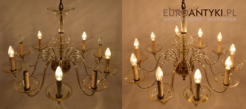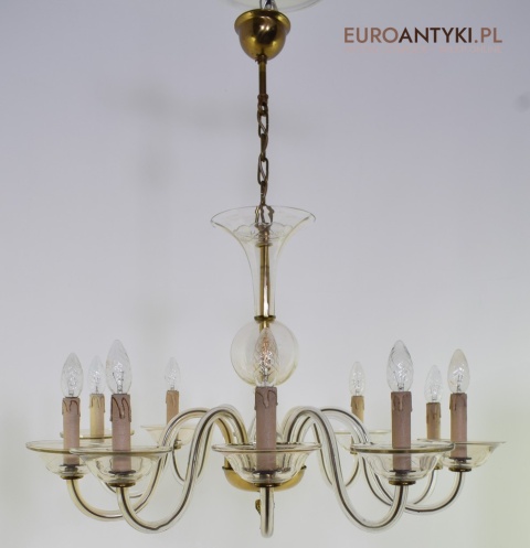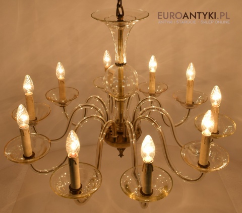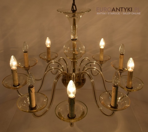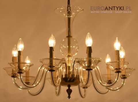 Duży, staromodny szklany żyrandol 10 ramienny. Bohemia.