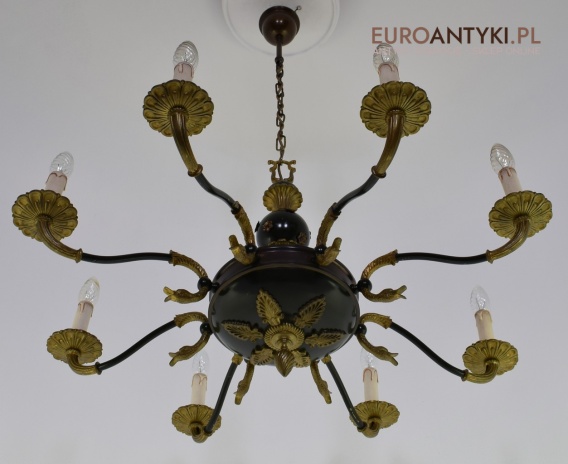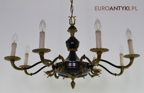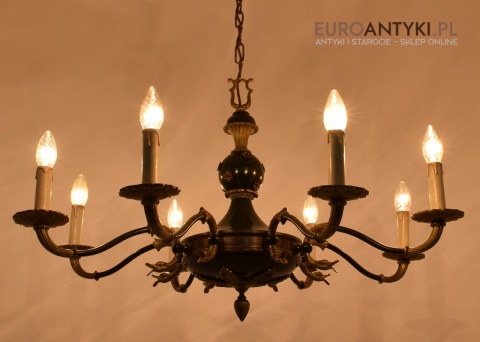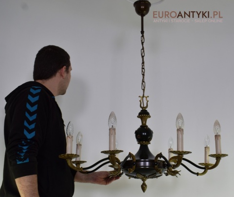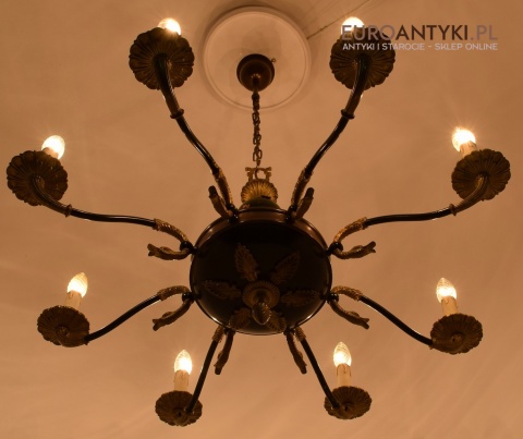 Duży żyrandol Empire do salonu. Zabytkowe oświetlenie.