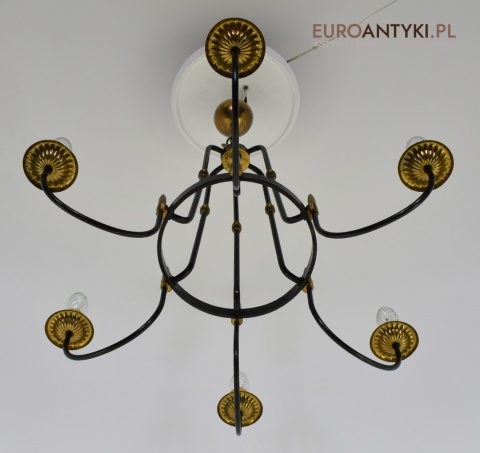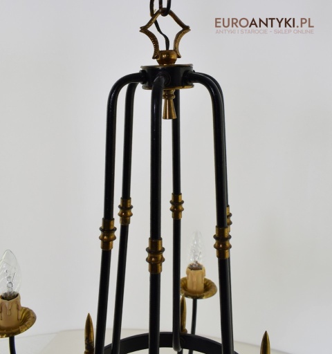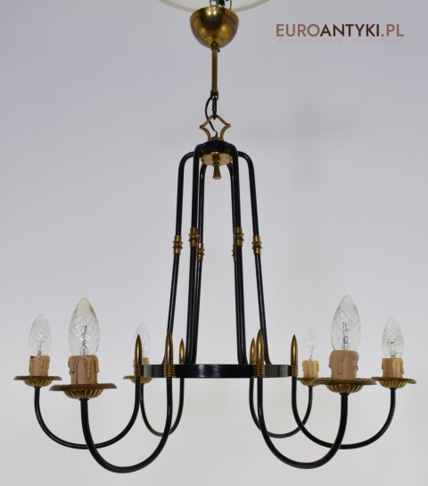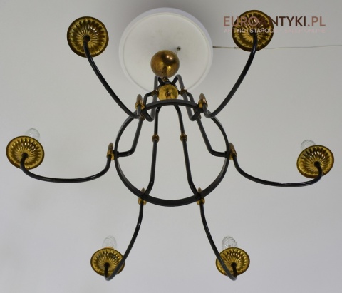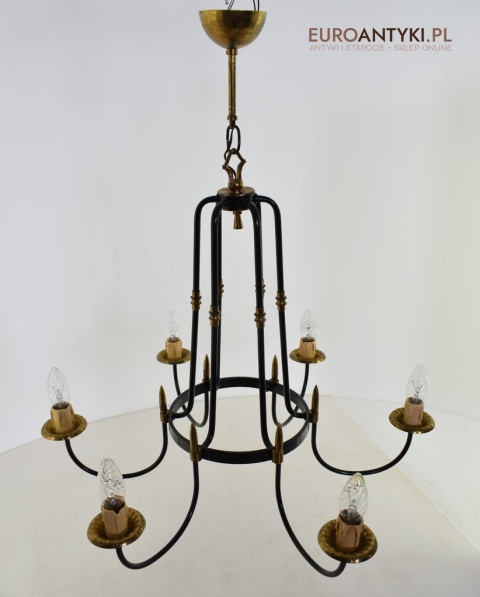 Duży żyrandol mosiężny w stylu retro, vintage. Lampy antyki.