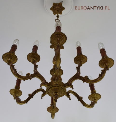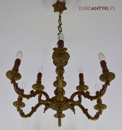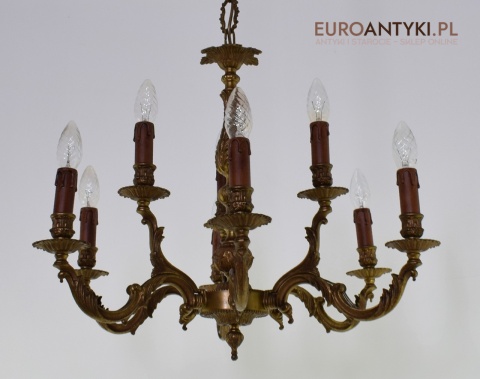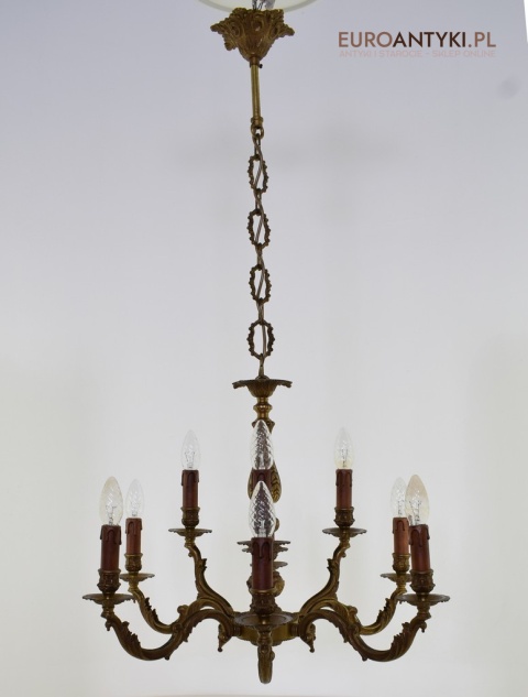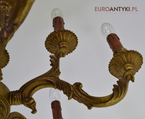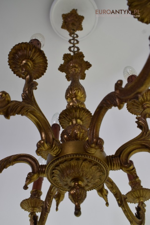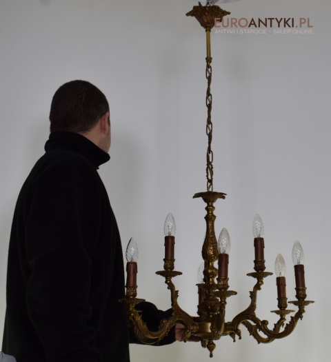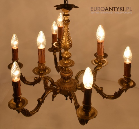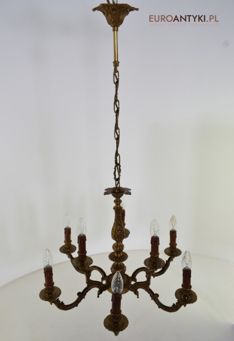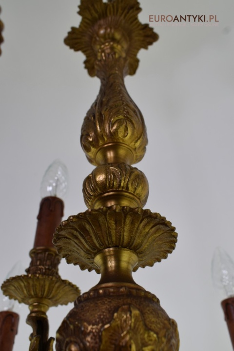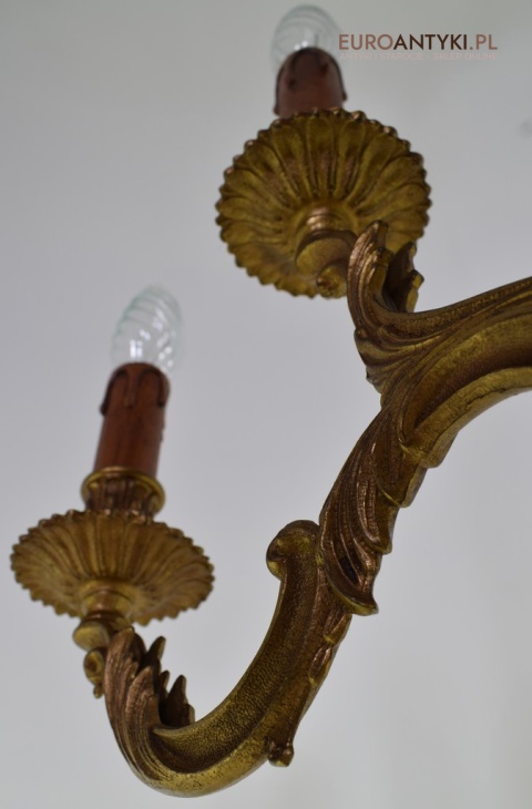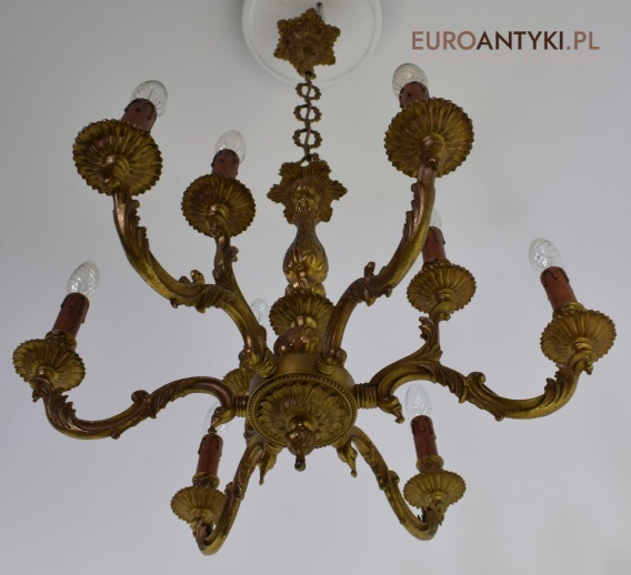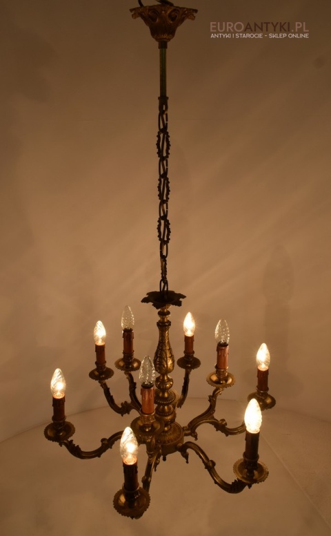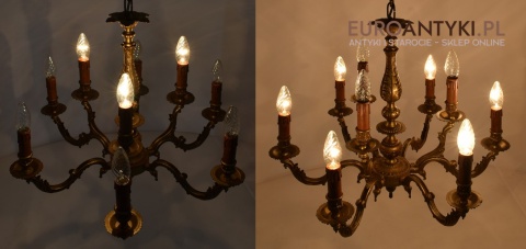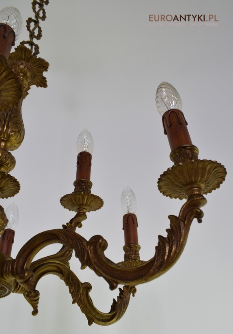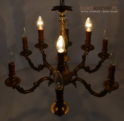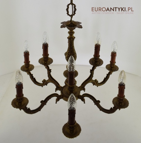 Dwupoziomowy mosiężny żyrandol w stylu retro. Stylowe żyrandole antyczne.
