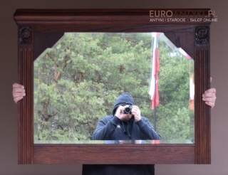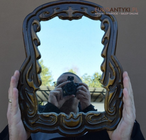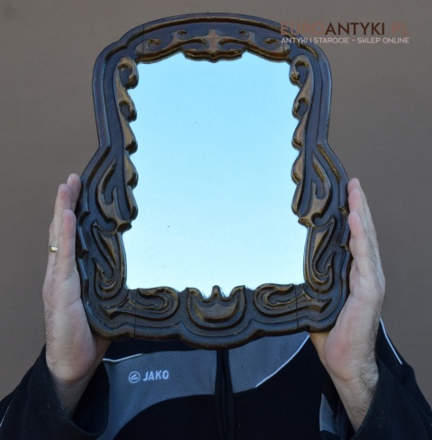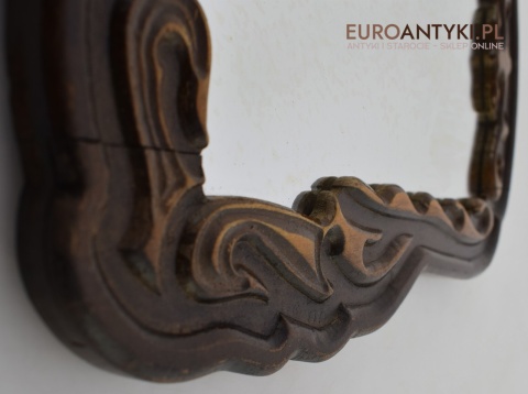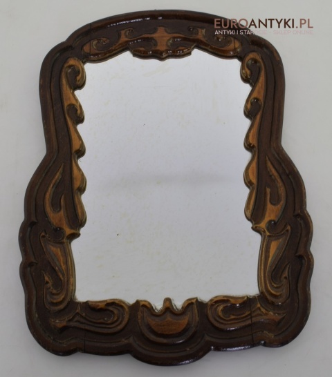 Eklektyczne lusterko ścienne w drewnianych ramach. Starocie.