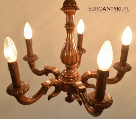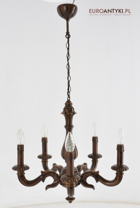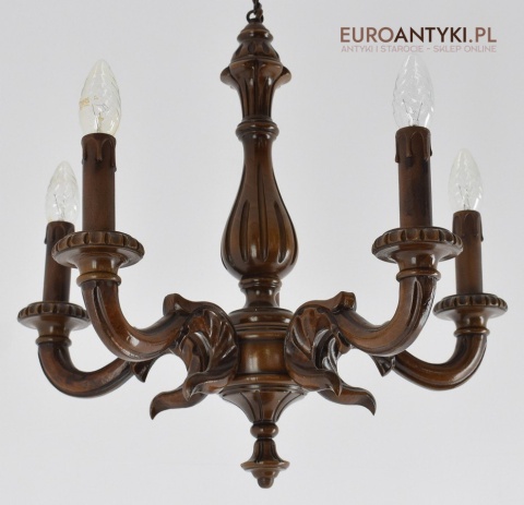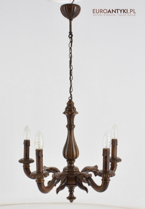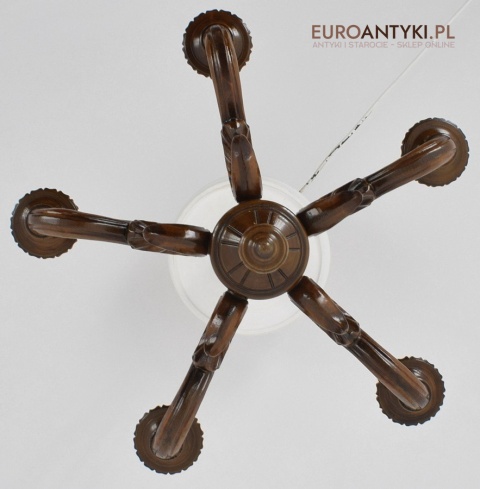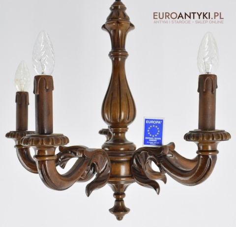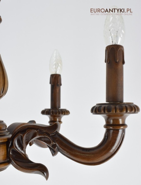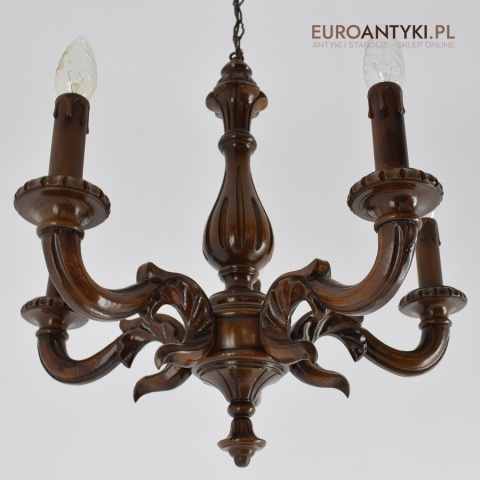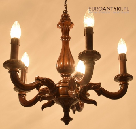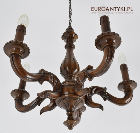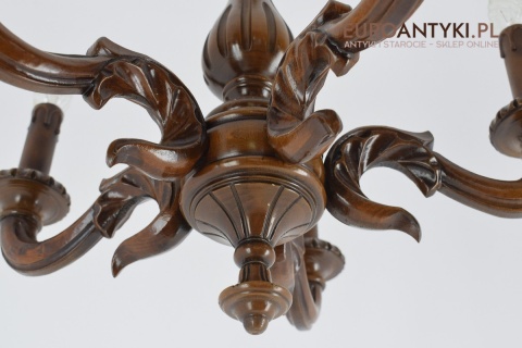 Eklektyczny drewniany ręcznie rzeźbiony żyrandol muzealny. Dworskie antyki.
