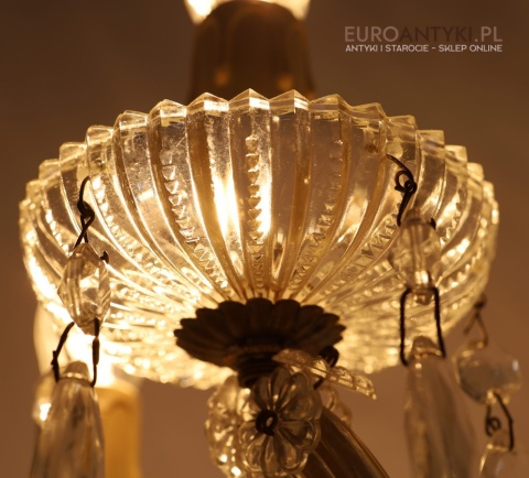 Antyczna lampka zachowana jest w super stanie, a wszystkie kryształki są kompletne. Jej vintage'owy design doskonale wpisze się zarówno w klasyczne, jak i bardziej nowoczesne aranżacje, dodając im unikalnego charakteru. To stara, antyczna perełka, która z pewnością stanie się wyjątkowym elementem dekoracyjnym każdego wnętrza.