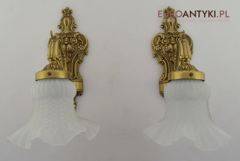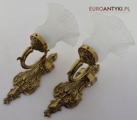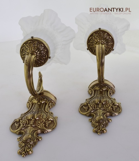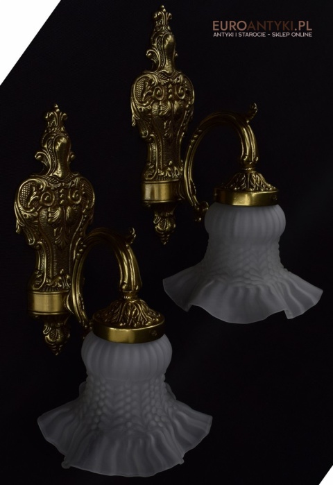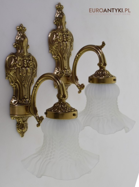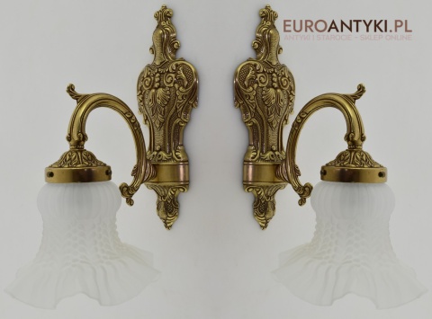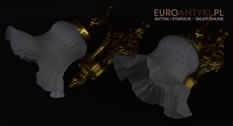 Ekskluzywne kinkiety mosiężne z kloszami. Lampy retro vintage.