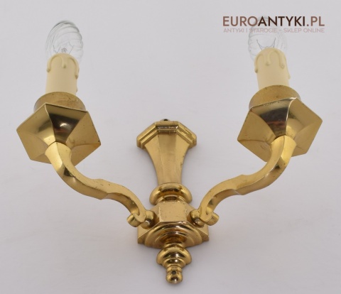 Złoty Blask Przeszłości: Dwuramienny Mosiężny Kinkiet w Stylu Klasycznym