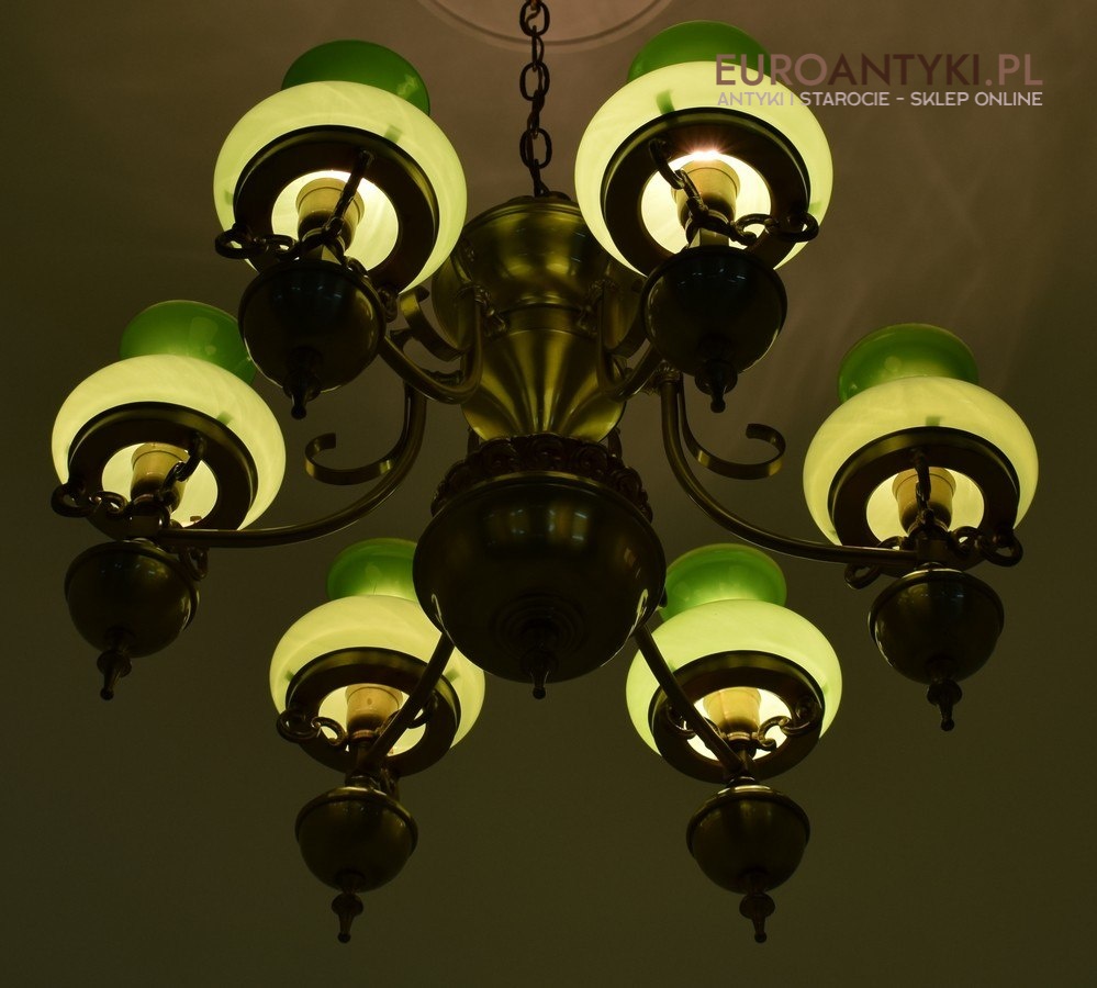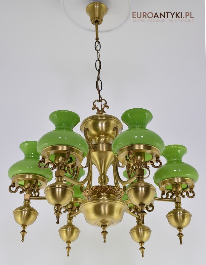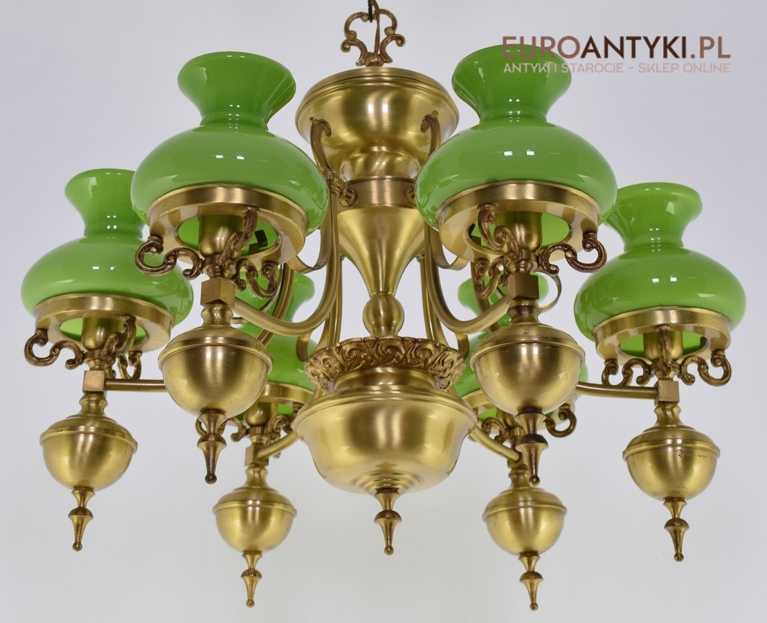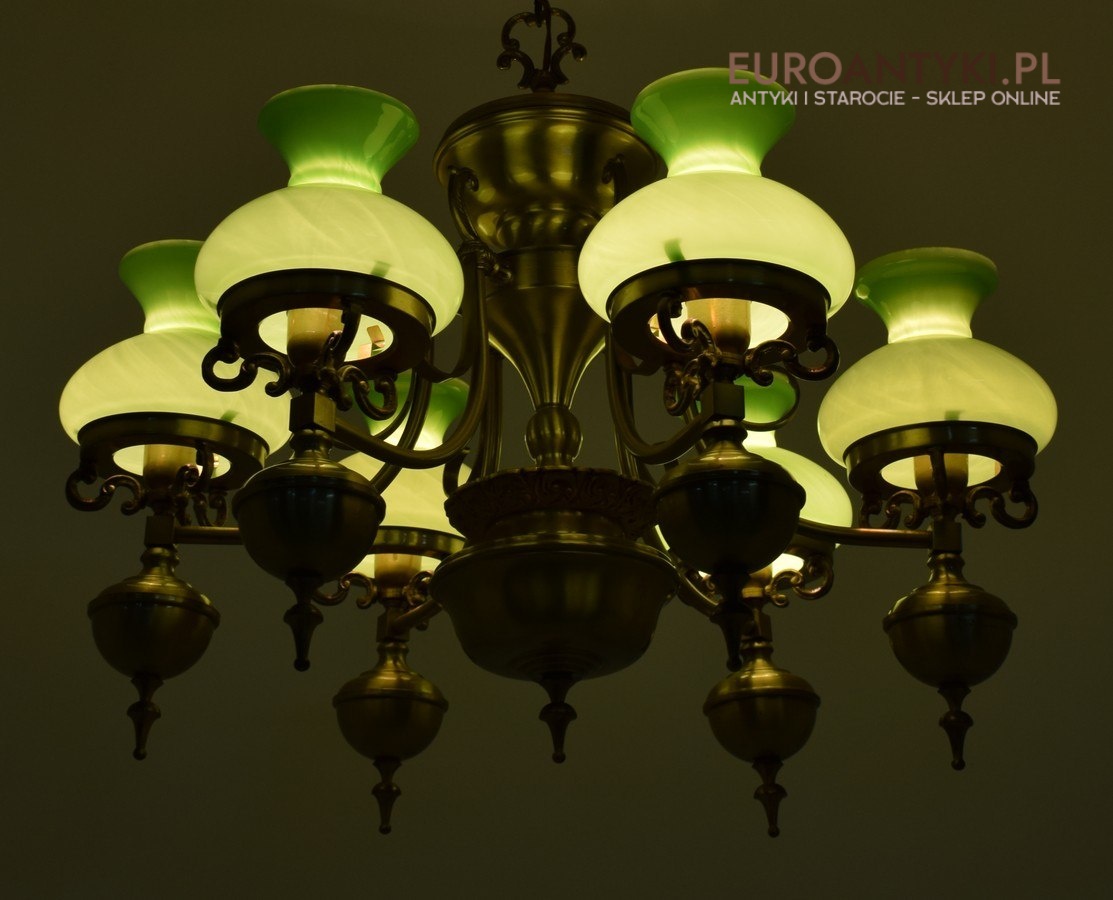 Empire żyrandol salonowy z zielonymi kloszami lampa Empir antyk