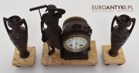 FANEUSE, zabytkowy zegar z przystawkami z lat 1900 antyk.